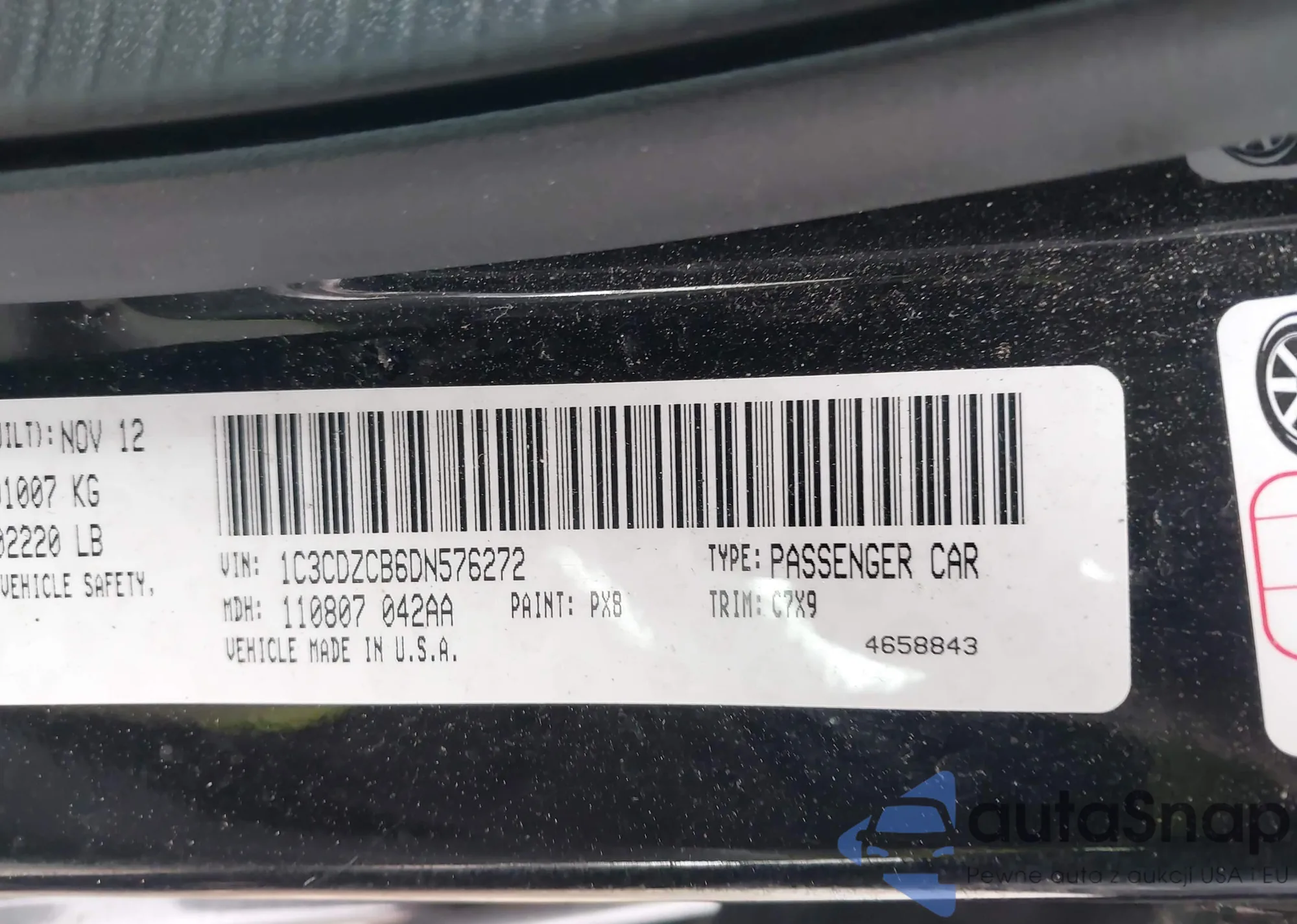 • VIN 1C3CDZCB6DN576272