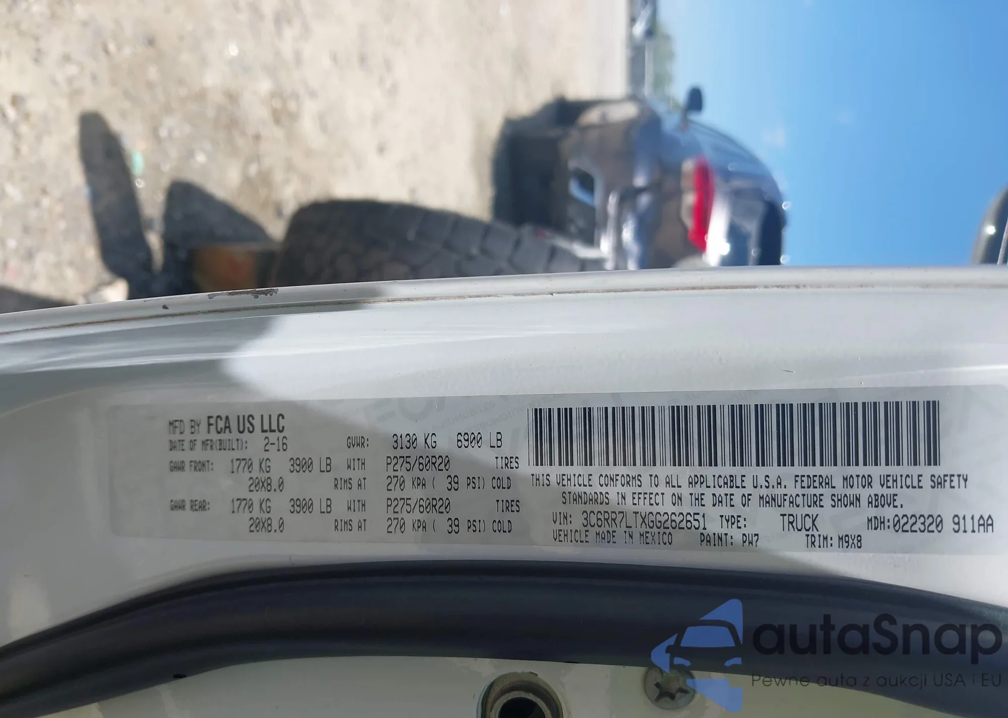 • VIN 3C6RR7LTXGG262651