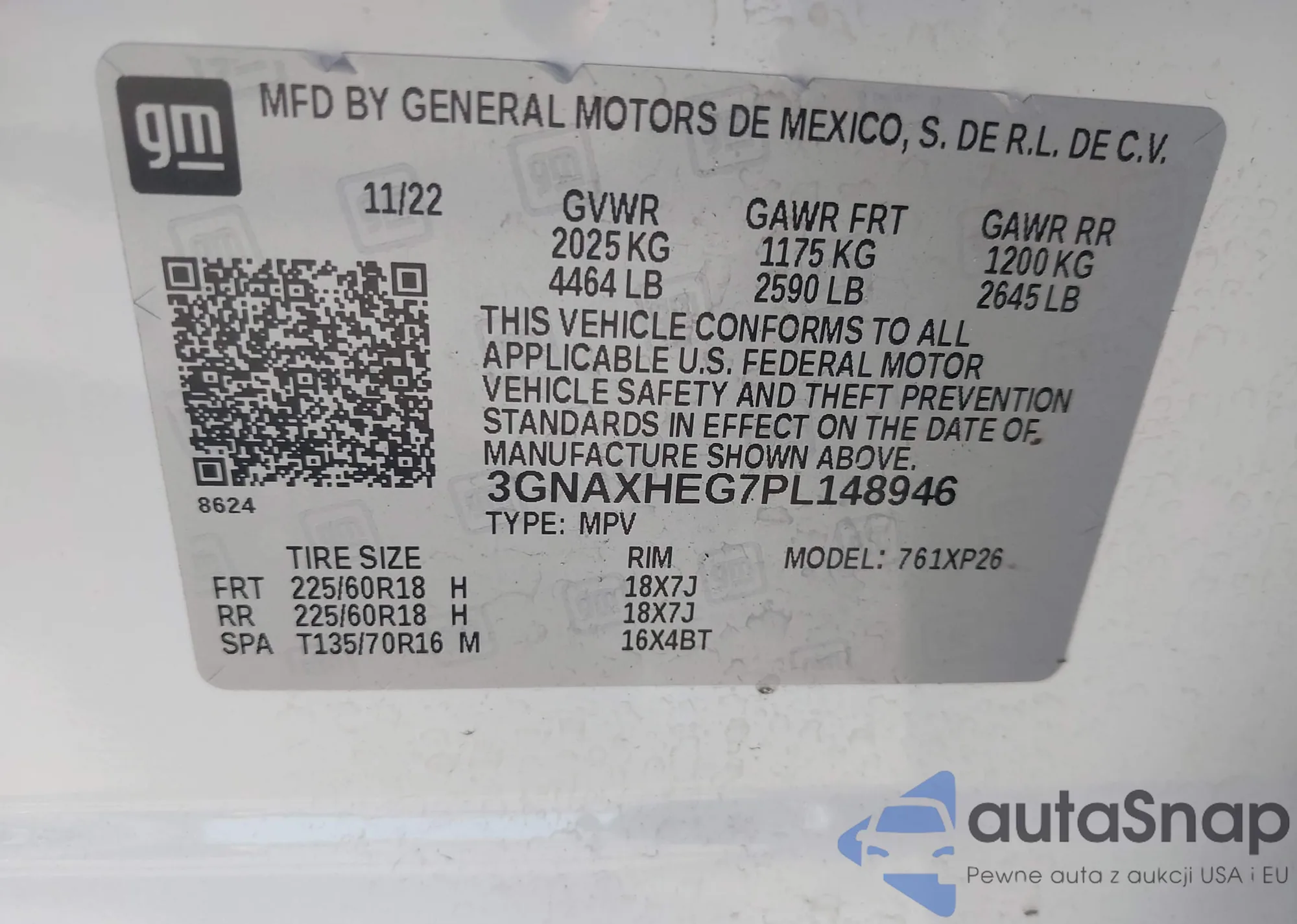 • VIN 3GNAXHEG7PL148946