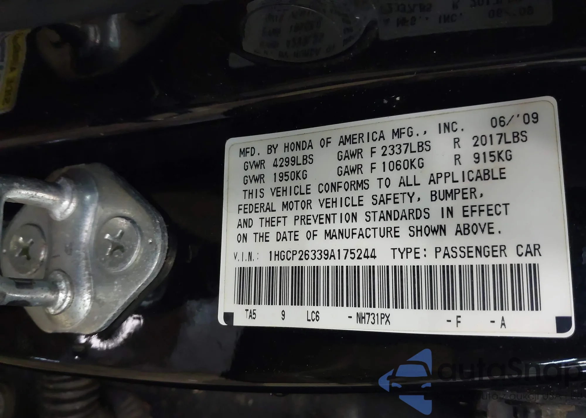 LOT: 42281148 VIN: 1HGCP26339A175244