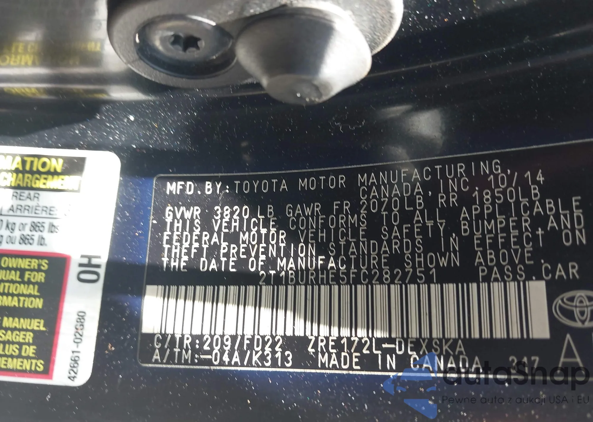 LOT: 42306189 VIN: 2T1BURHE5FC282751
