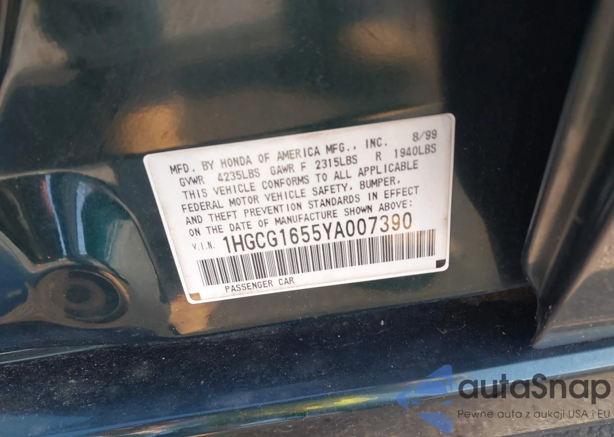 LOT: 42321049 VIN: 1HGCG1655YA007390