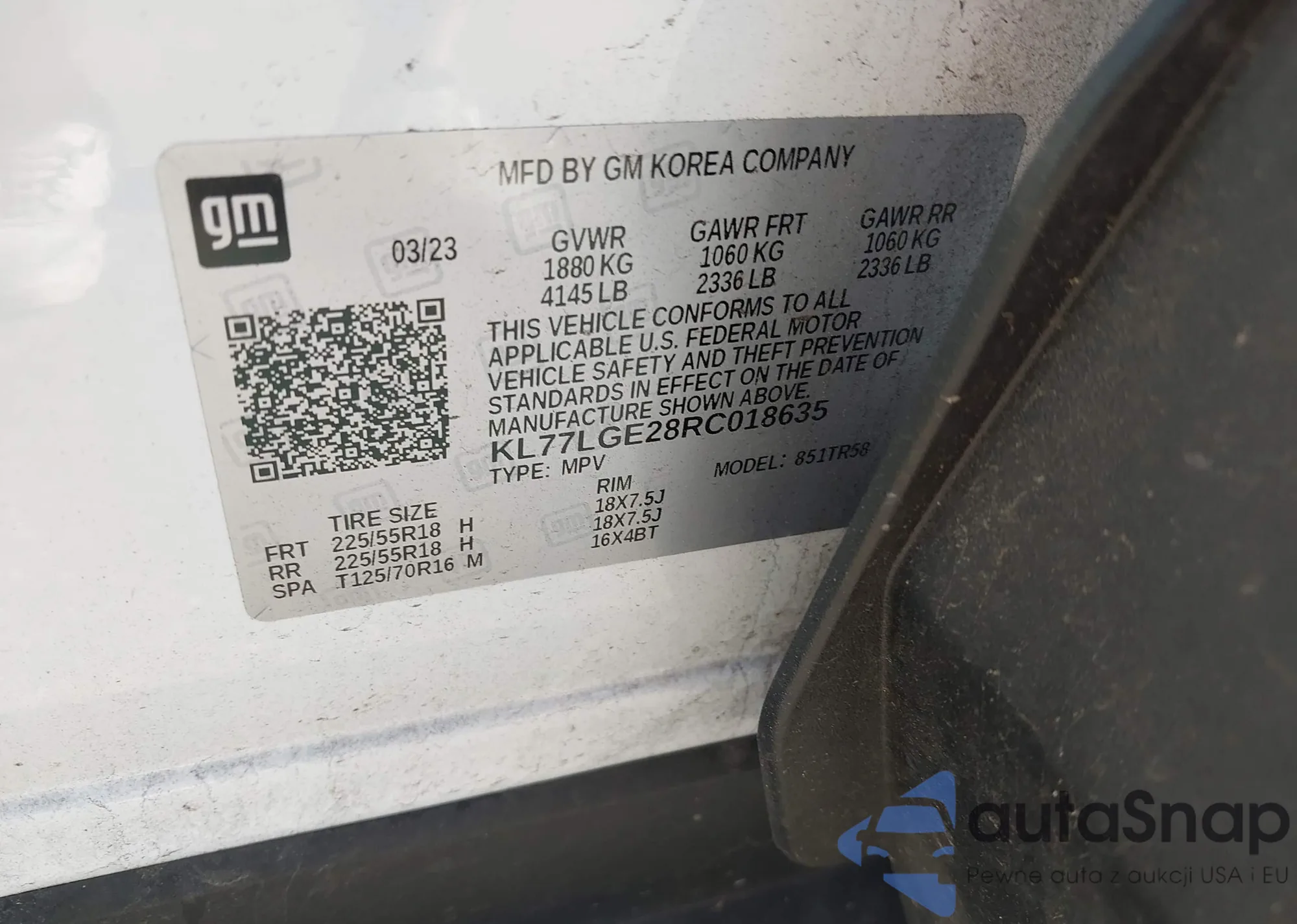 • VIN KL77LGE28RC018635