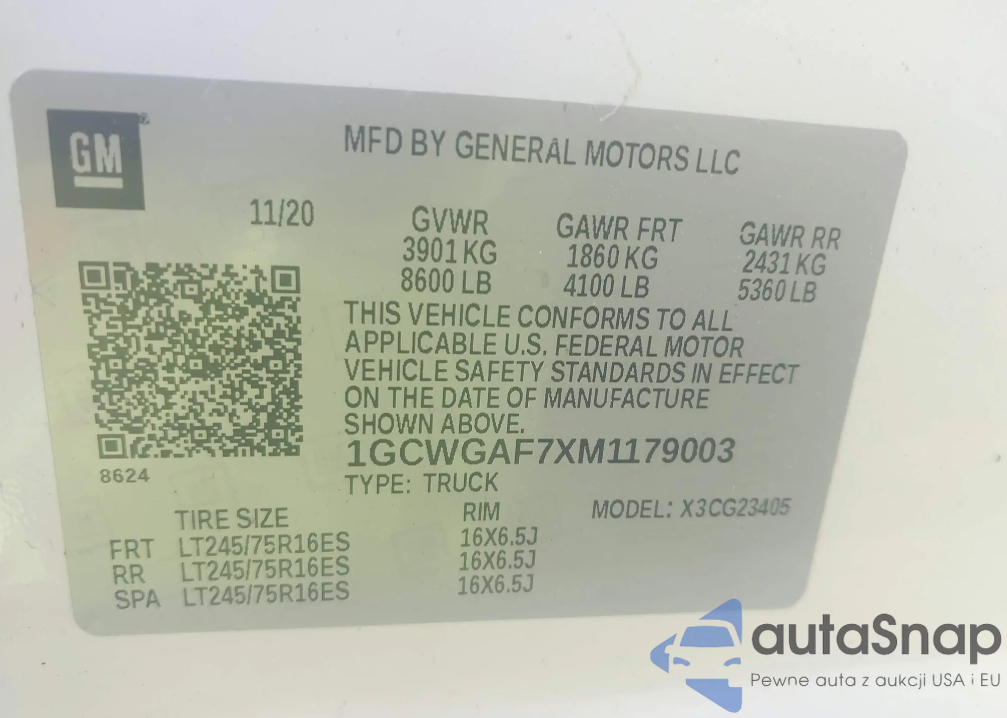 • VIN 1GCWGAF7XM1179003