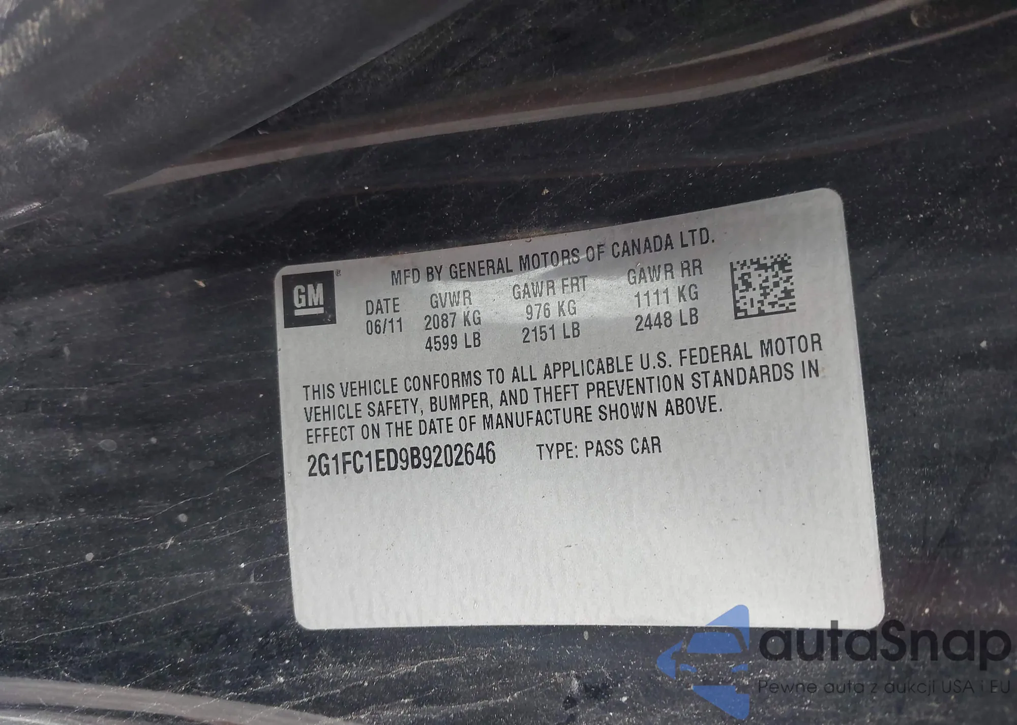 • VIN 2G1FC1ED9B9202646