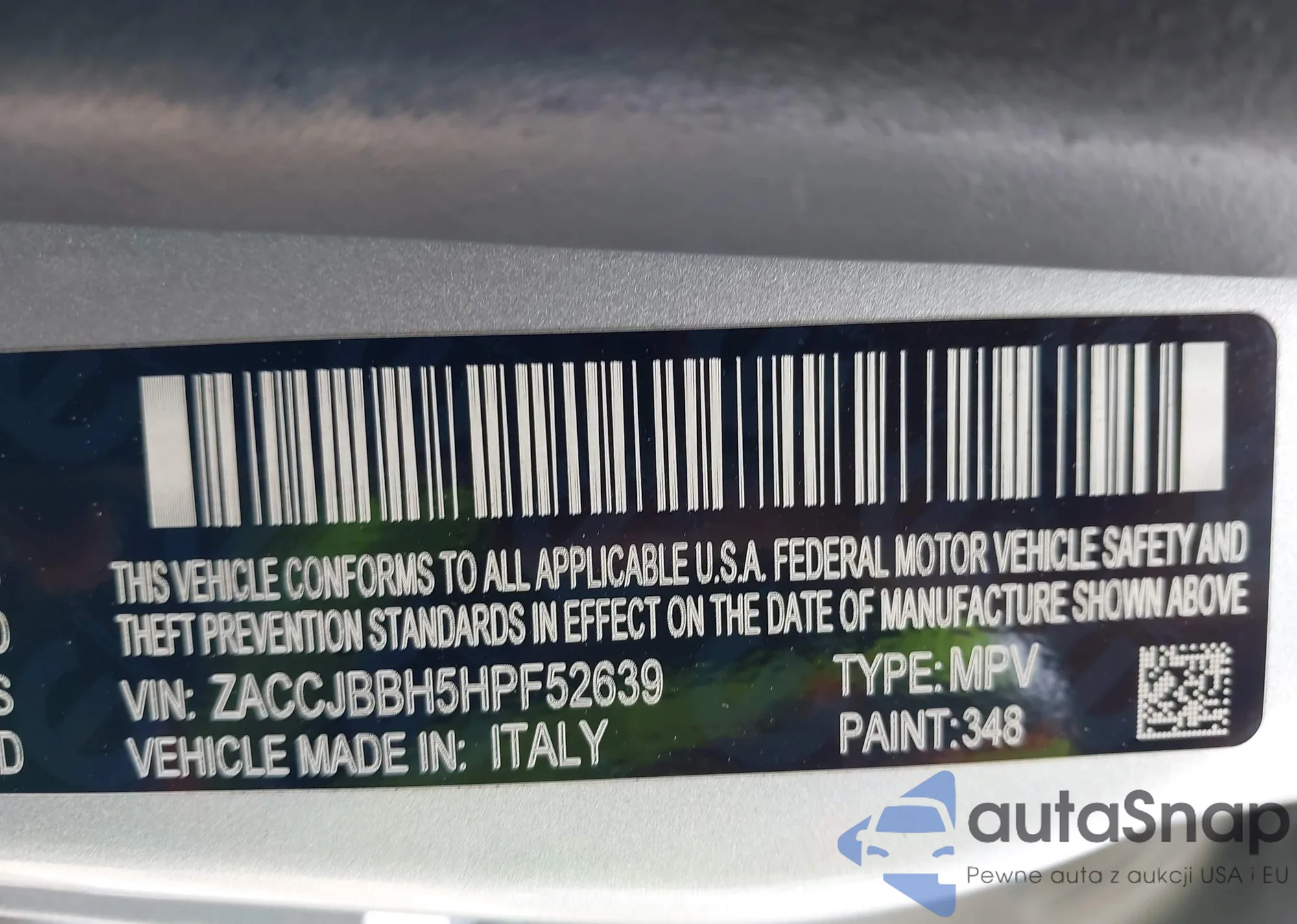 • VIN ZACCJBBH5HPF52639