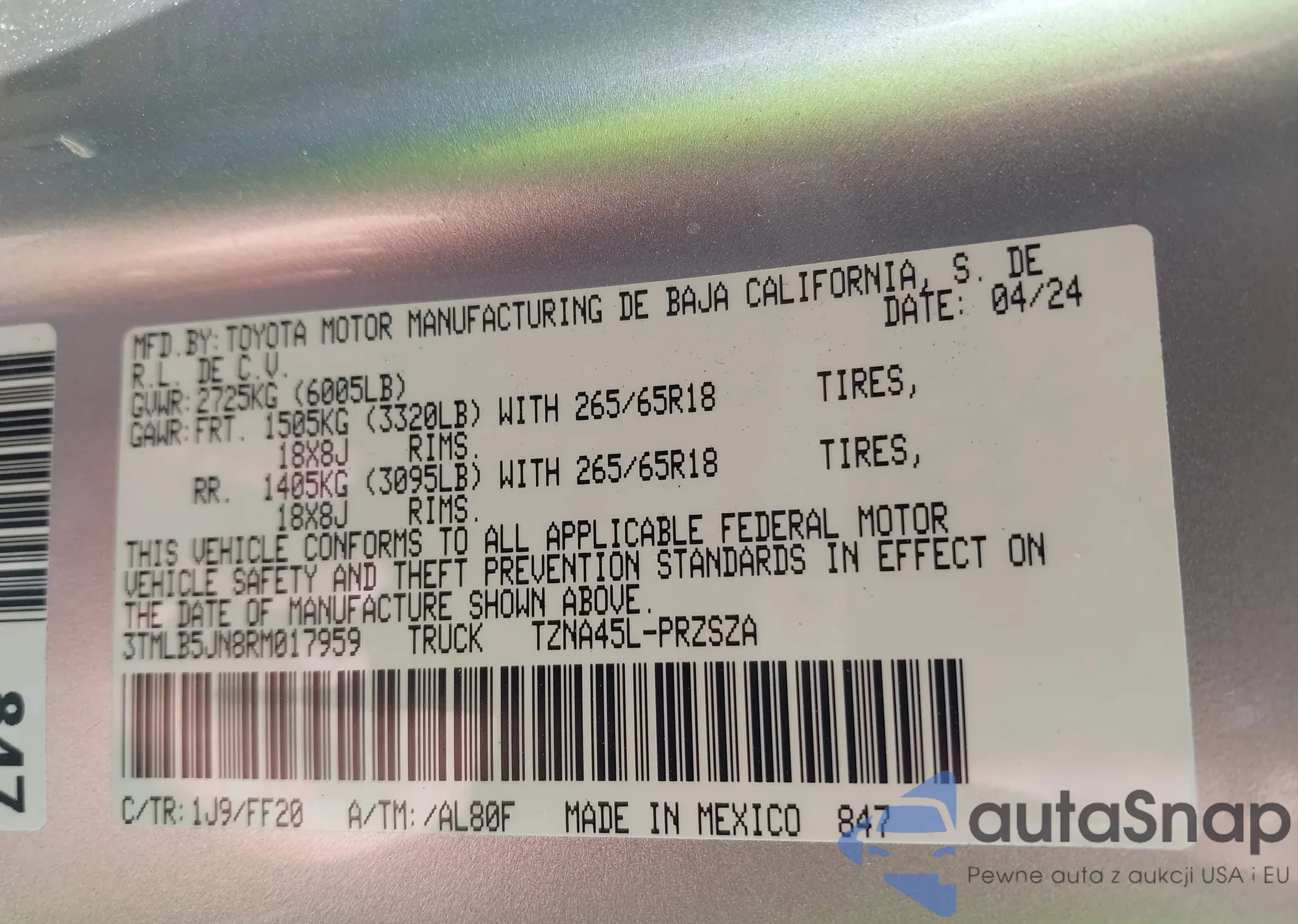 • VIN 3TMLB5JN8RM017959