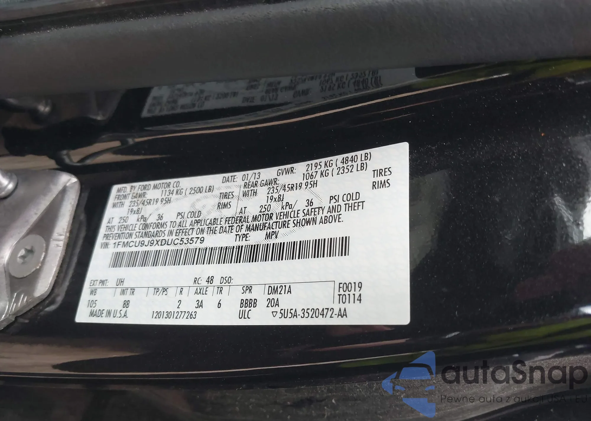 LOT: 42166603 VIN: 1FMCU9J9XDUC53579