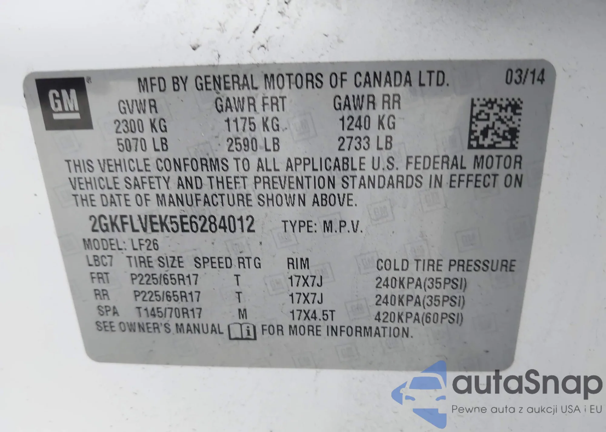 • VIN 2GKFLVEK5E6284012