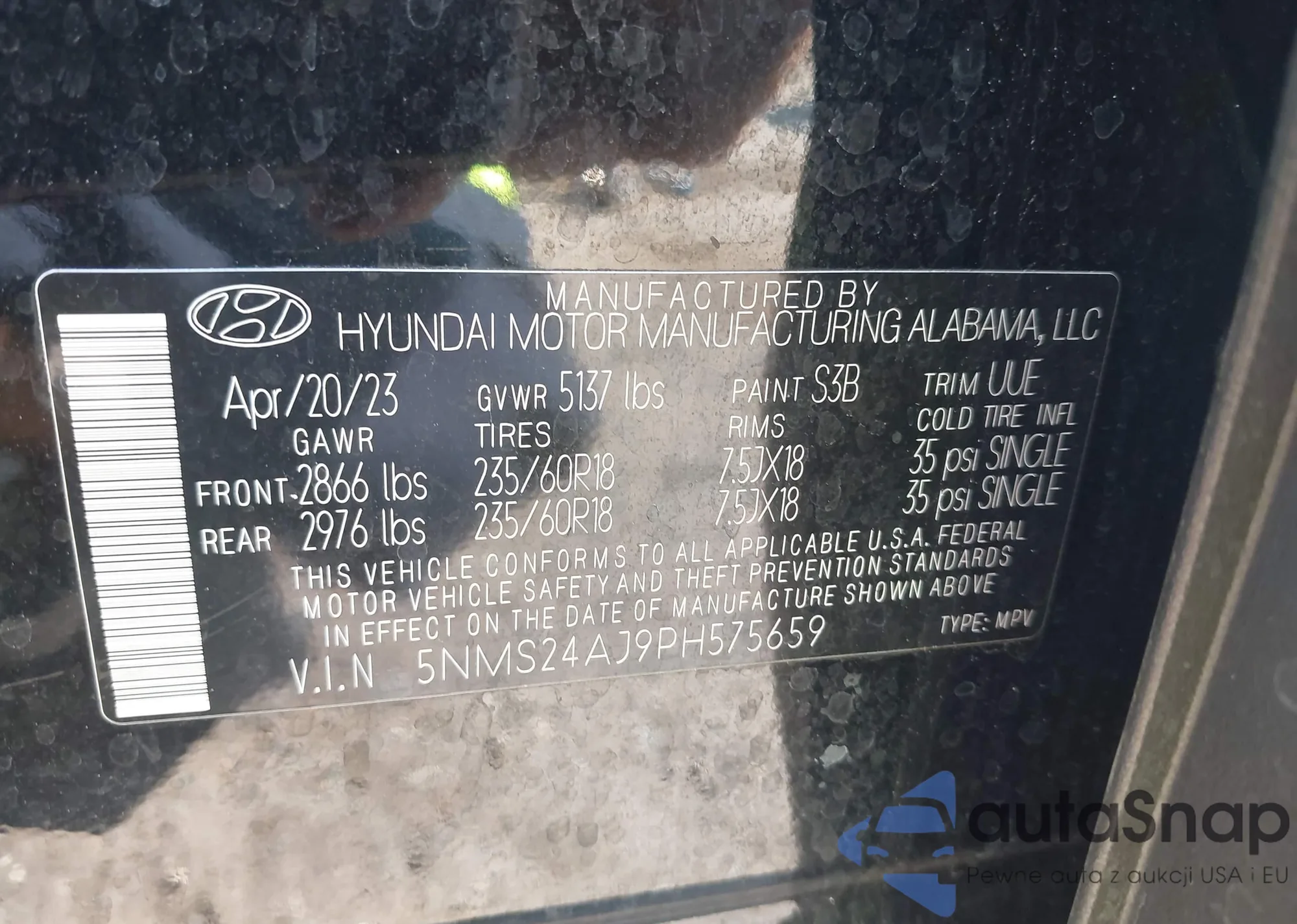 • VIN 5NPE34AF0KH739771