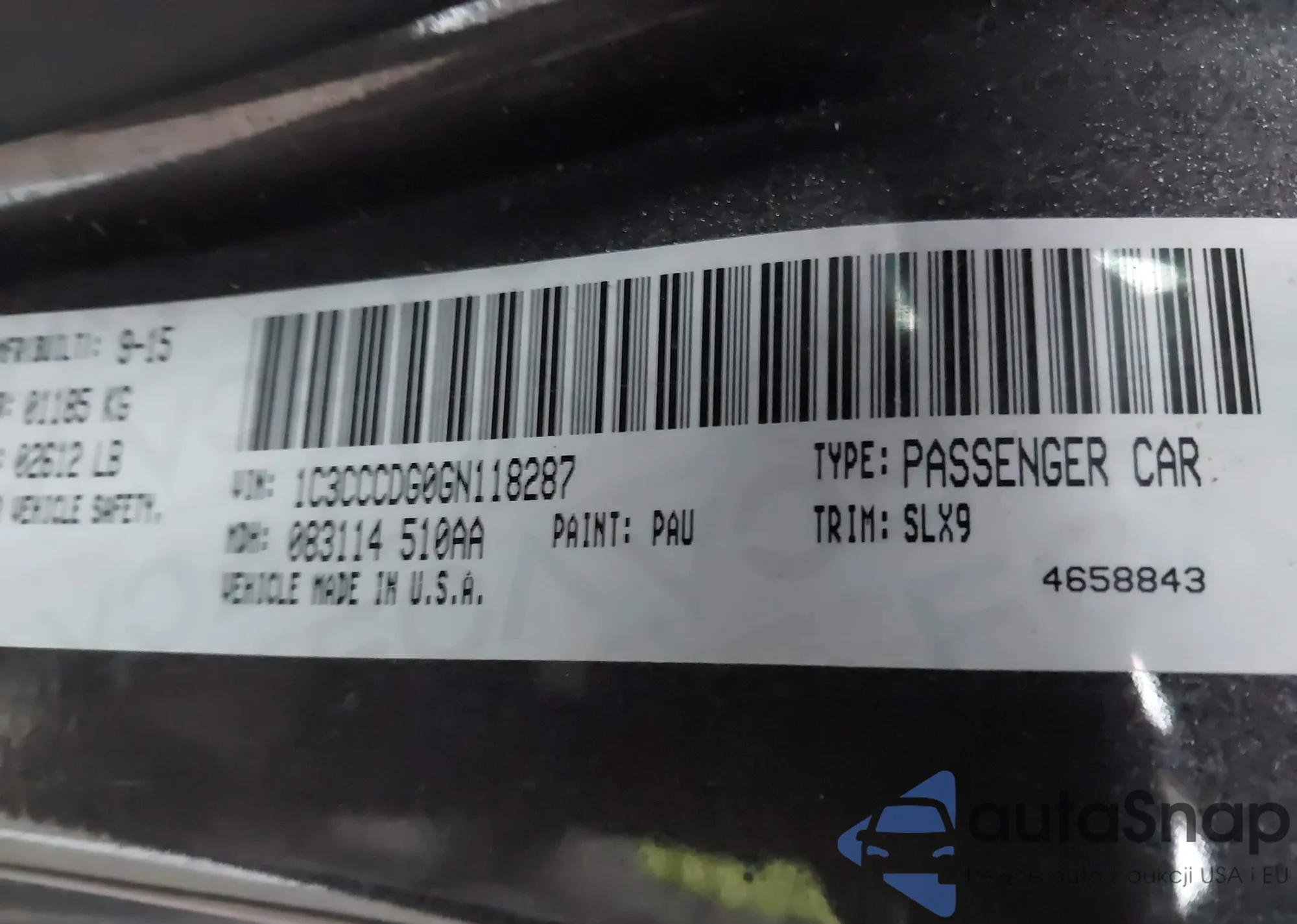 LOT: 41846713 VIN: 1C3CCCDG0GN118287