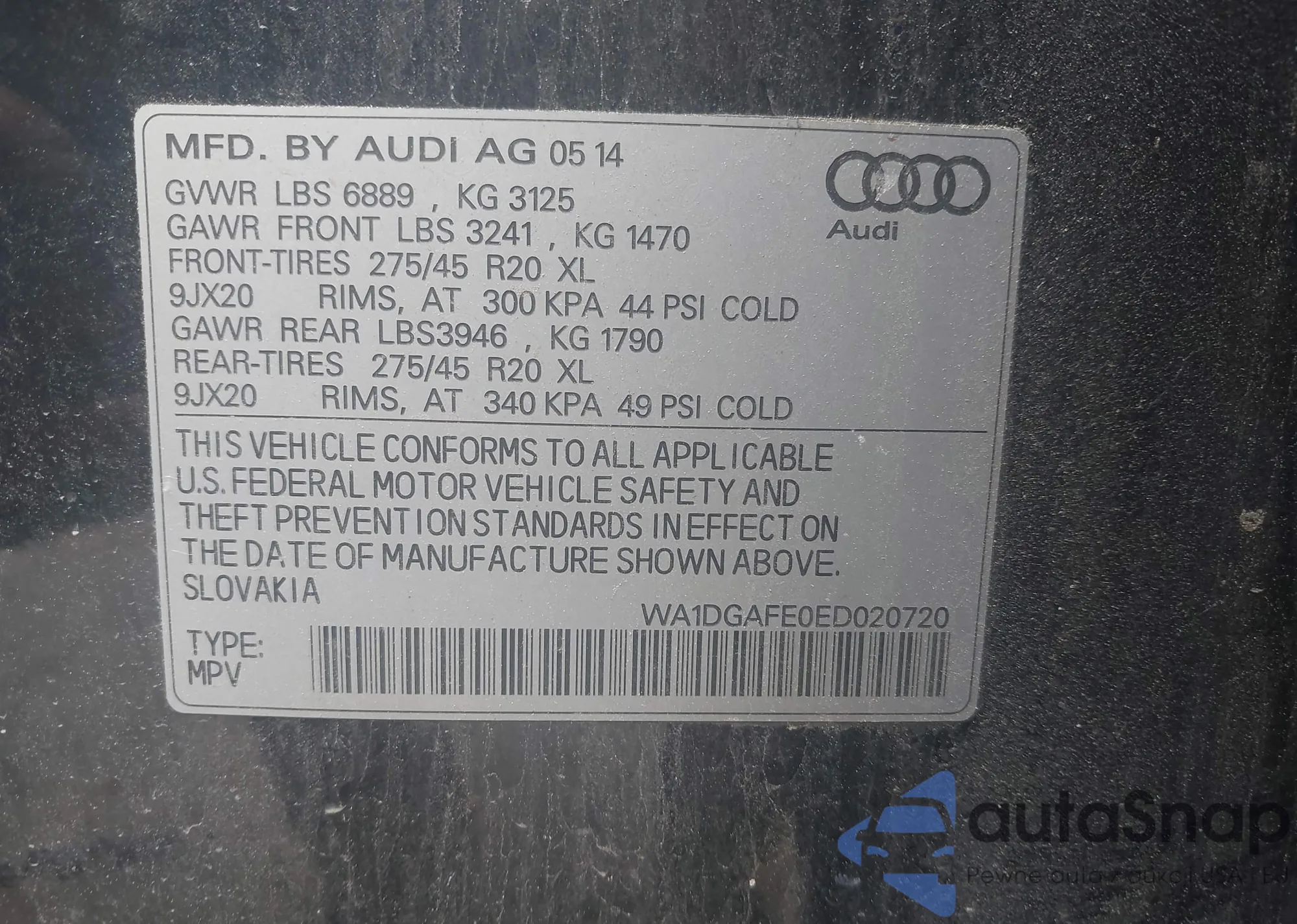 LOT: 42448552 VIN: WA1DGAFE0ED020720