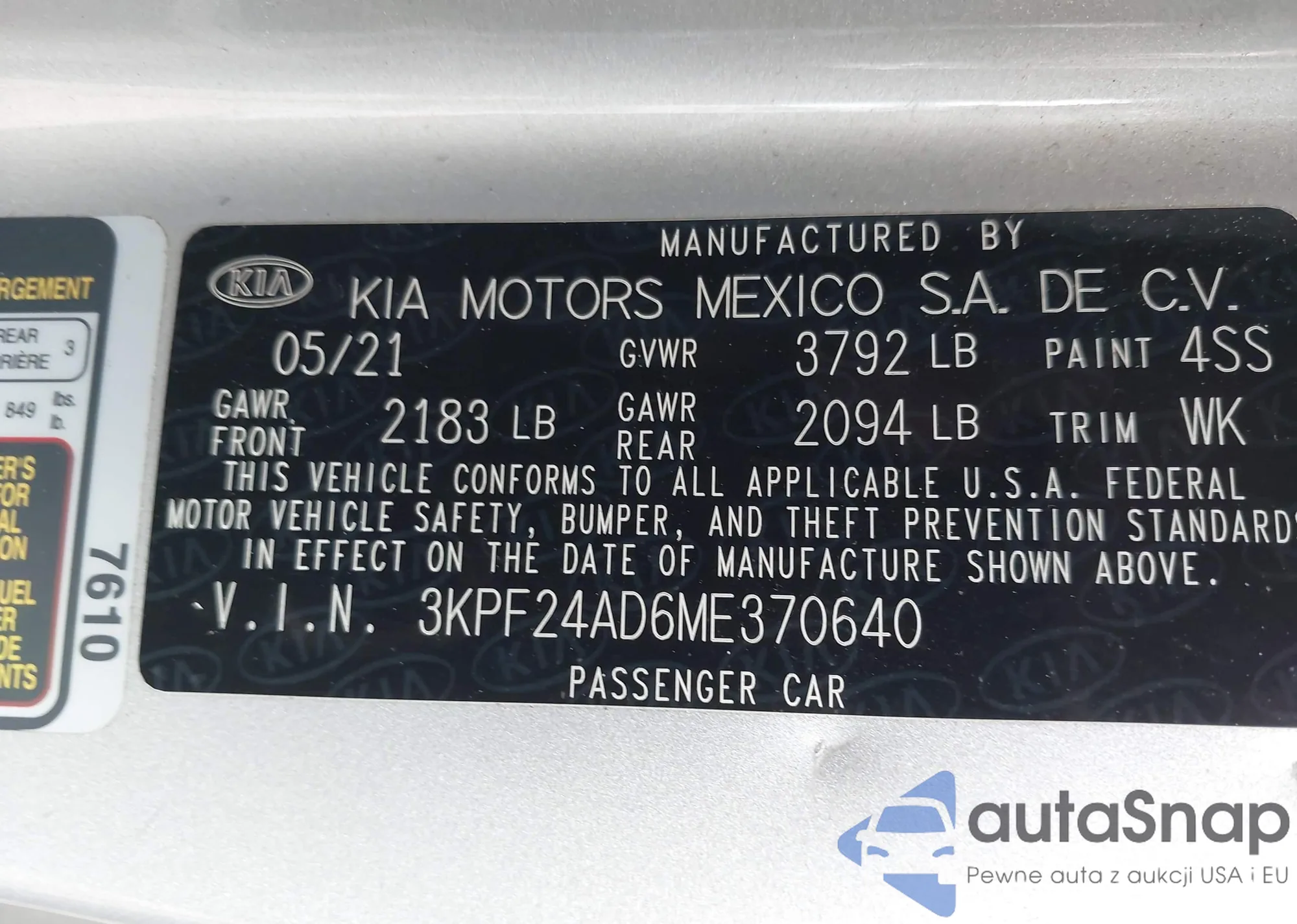 • VIN 3KPF24AD6ME370640