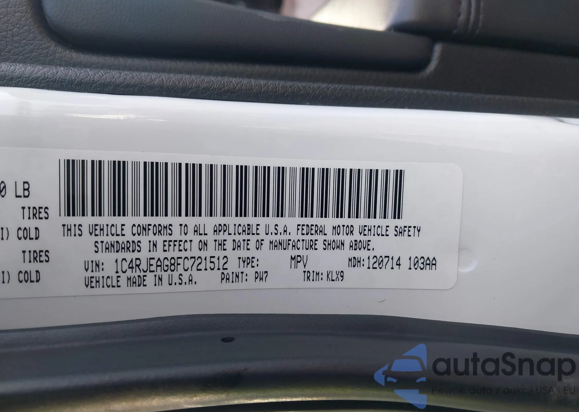 • VIN 1C4RJEAG8FC721512