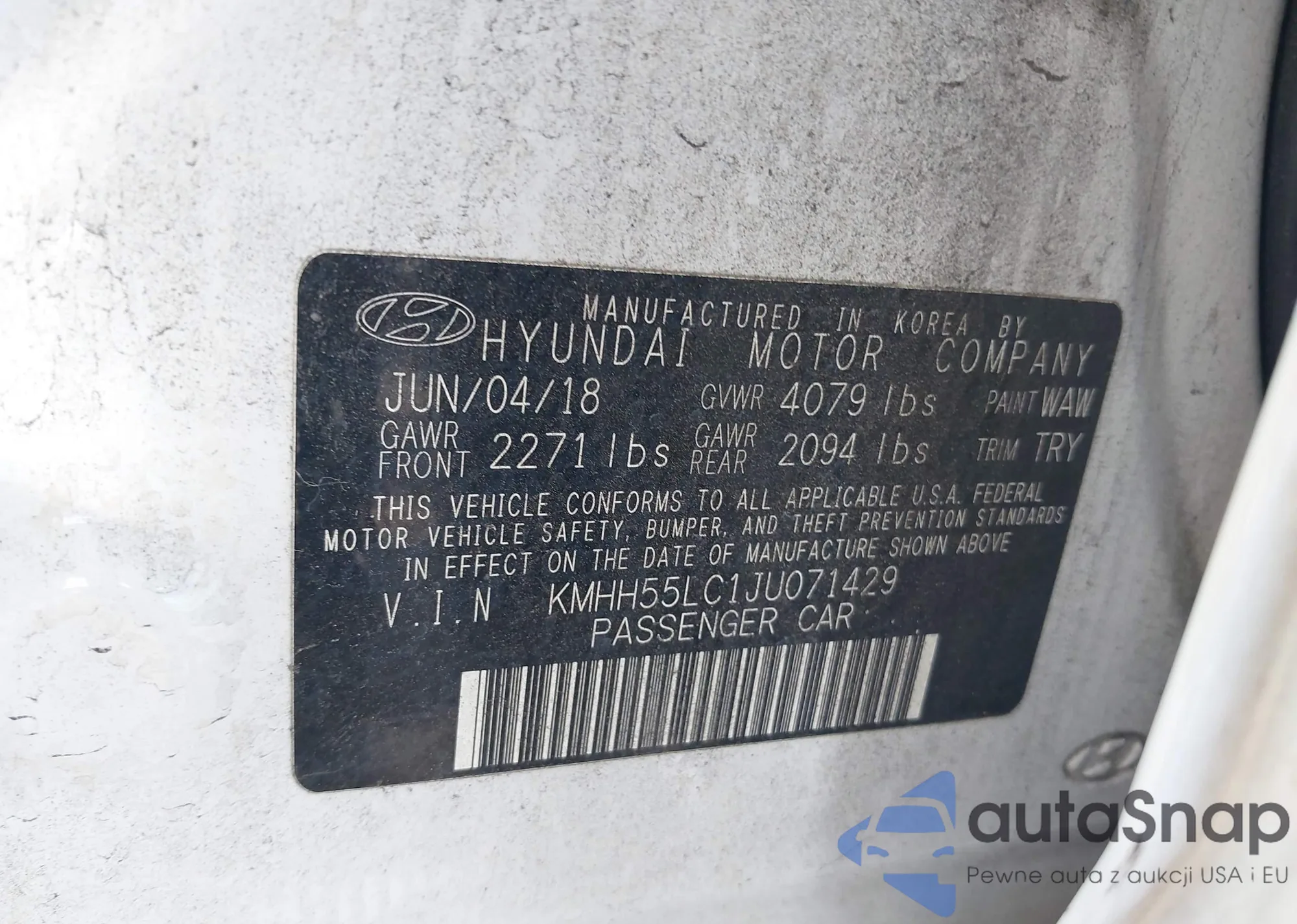 LOT: 41922458 VIN: KMHH55LC1JU071429