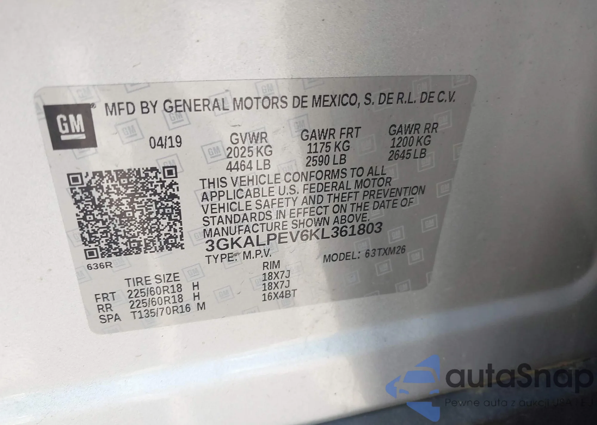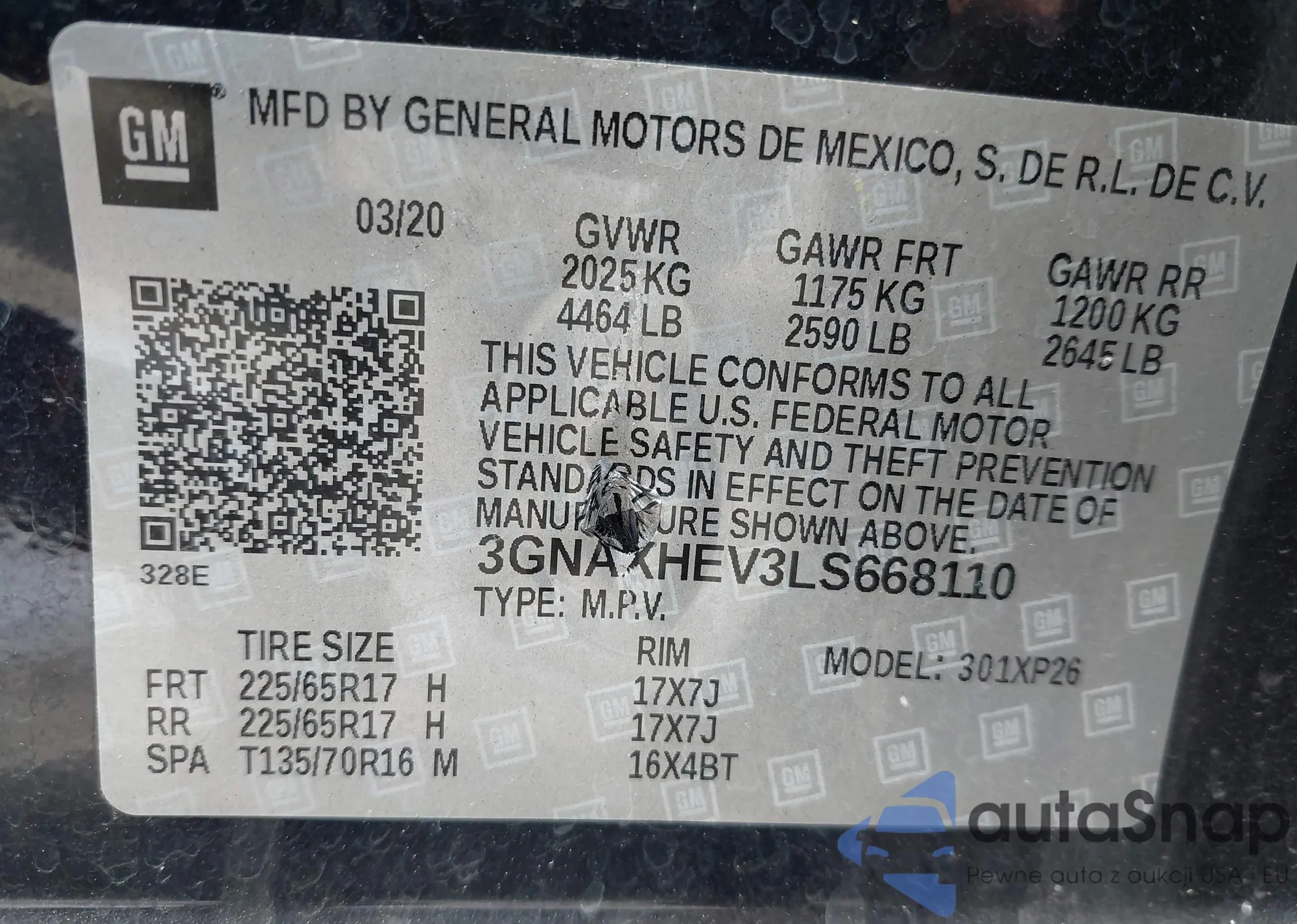 LOT: 42148375 VIN: 3GNAXHEV3LS668110