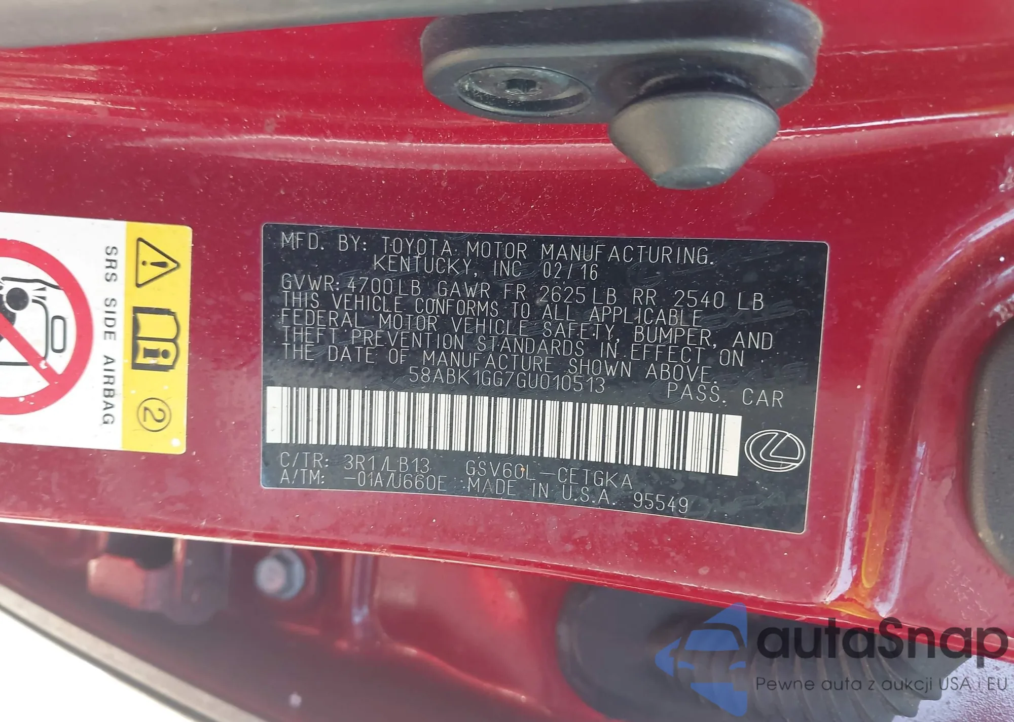 • VIN 58ABK1GG7GU010513