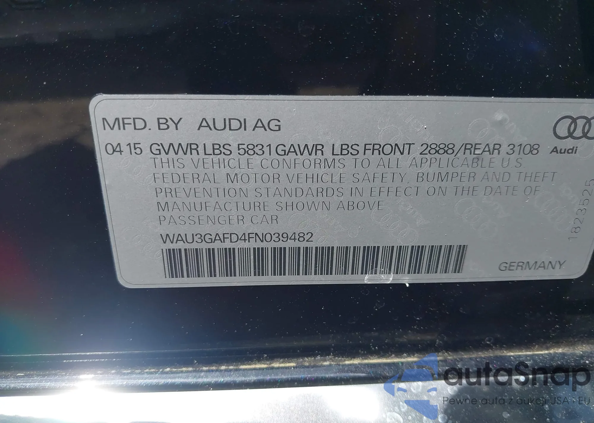 • VIN WAU3GAFD4FN039482