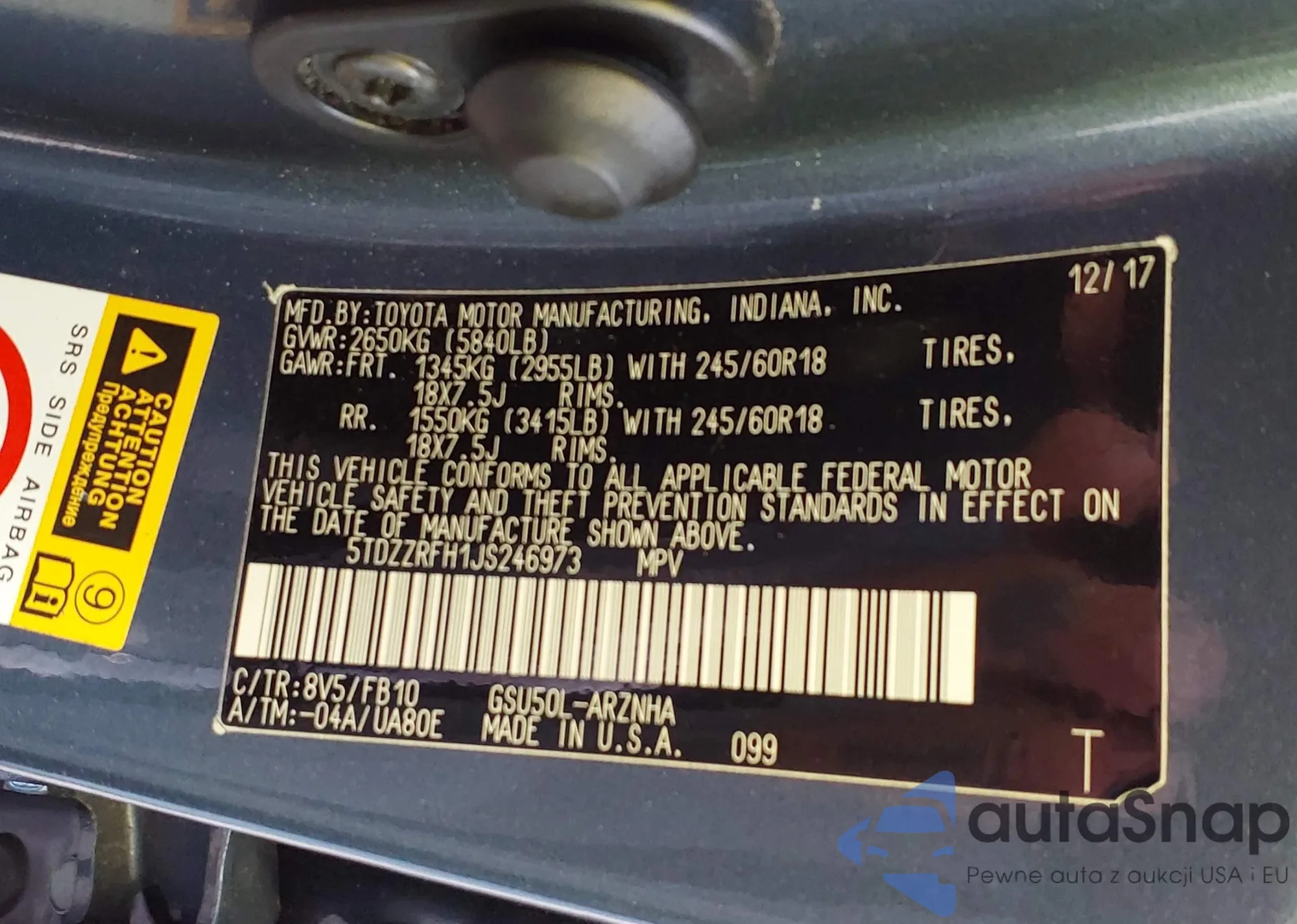 • VIN 5TDZZRFH1JS246973