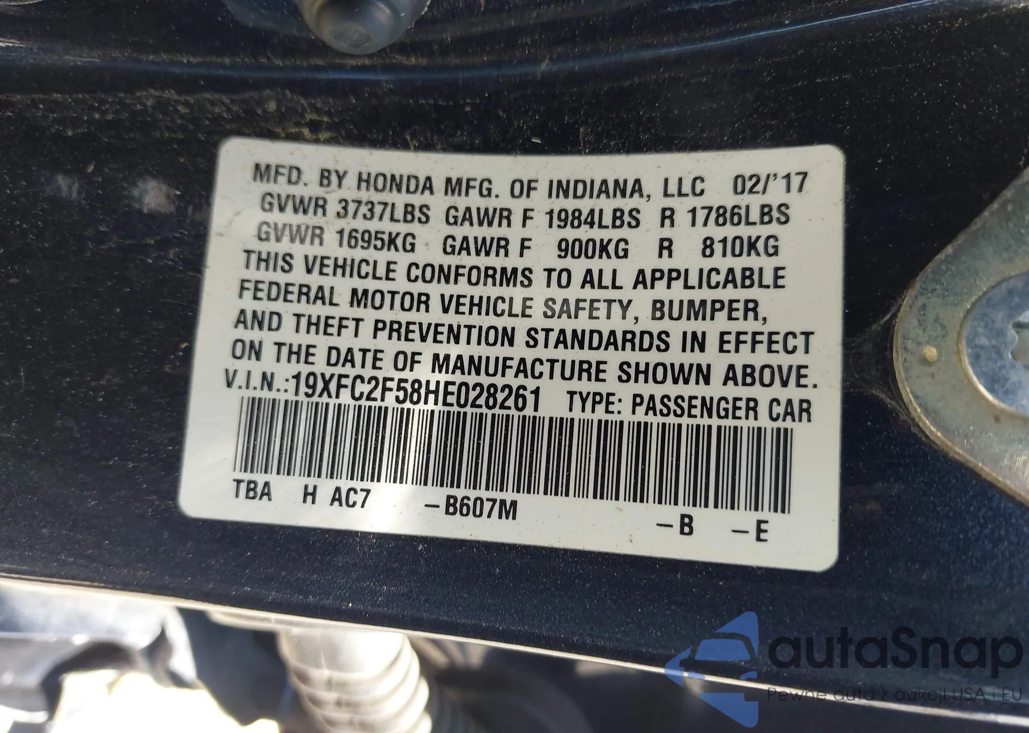 2017 Honda Civic Lx из США, поврежденный, VIN 19XFC2F58HE028261