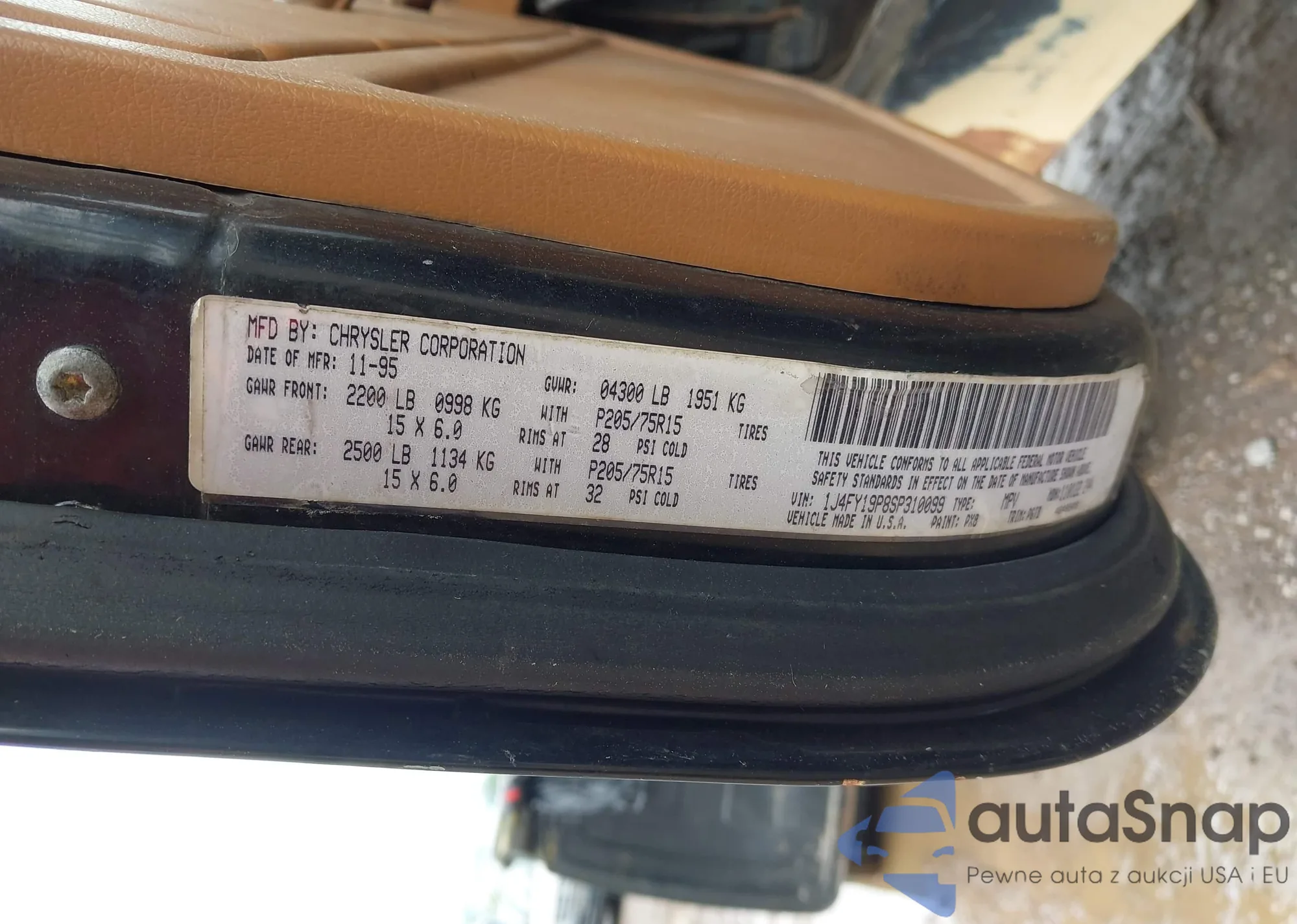 LOT: 42254030 VIN: 1J4FY19P8SP310099