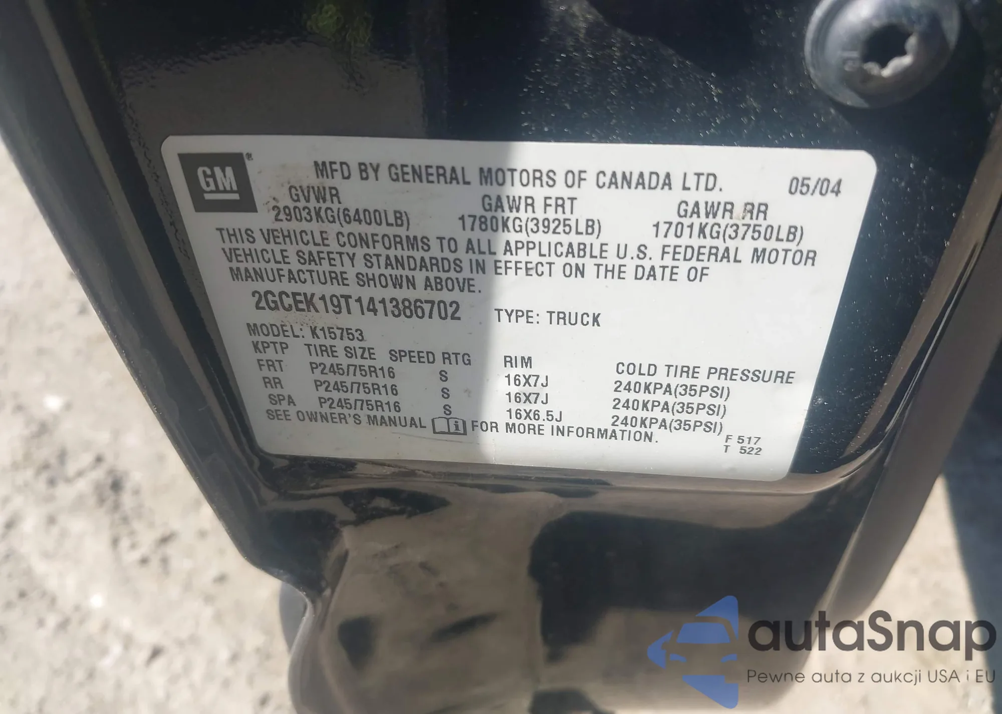 • VIN 1GCCS138548193414