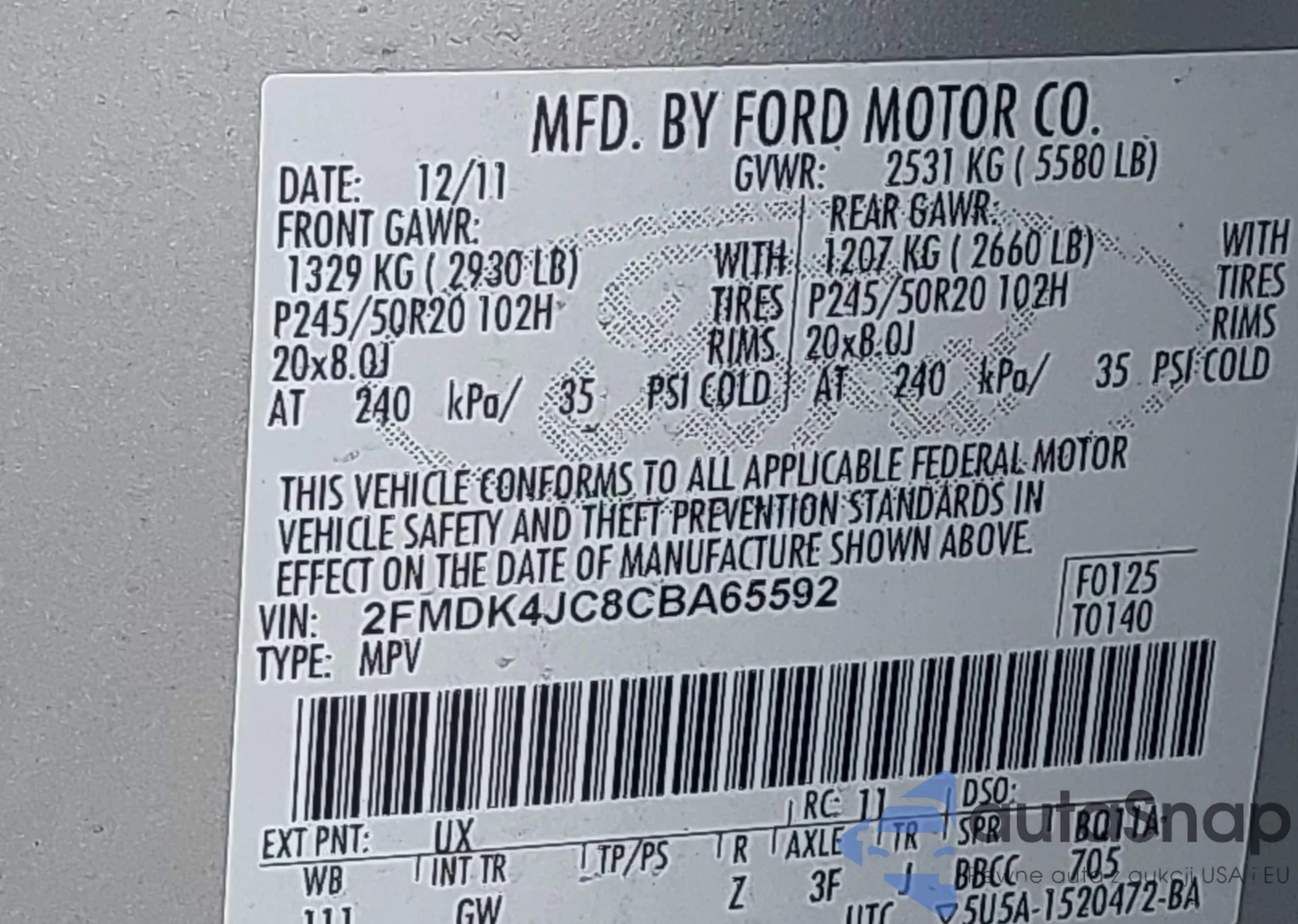 LOT: 42350894 VIN: 2FMDK4JC8CBA65592