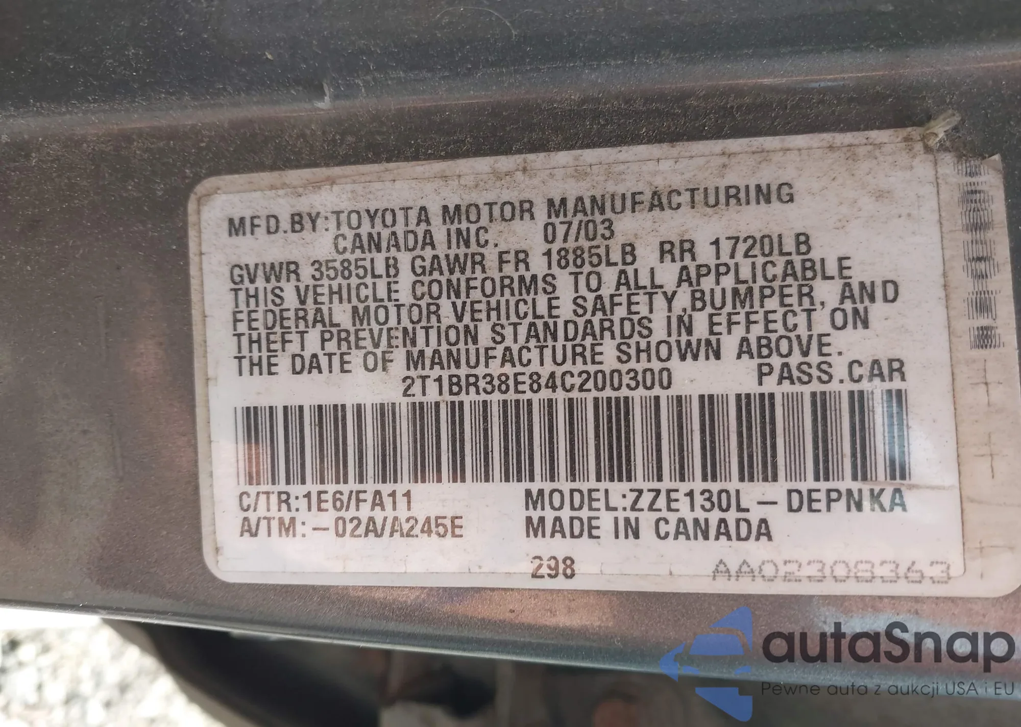LOT: 42380313 VIN: JHMCP26718C003829