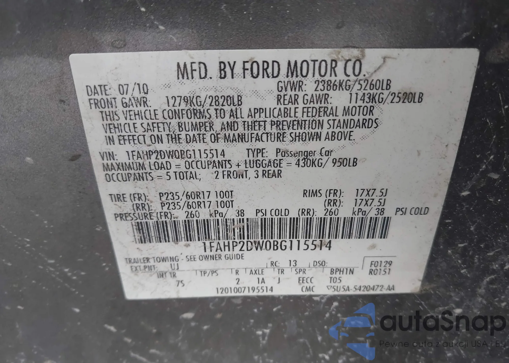 • VIN 1FAHP2DW0BG115514