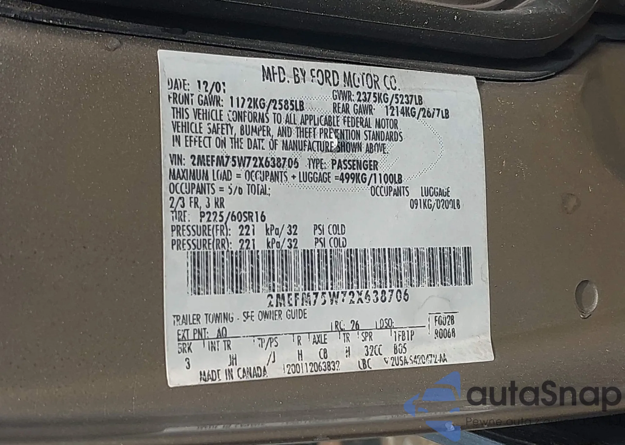 • VIN 2MEFM75W72X638706