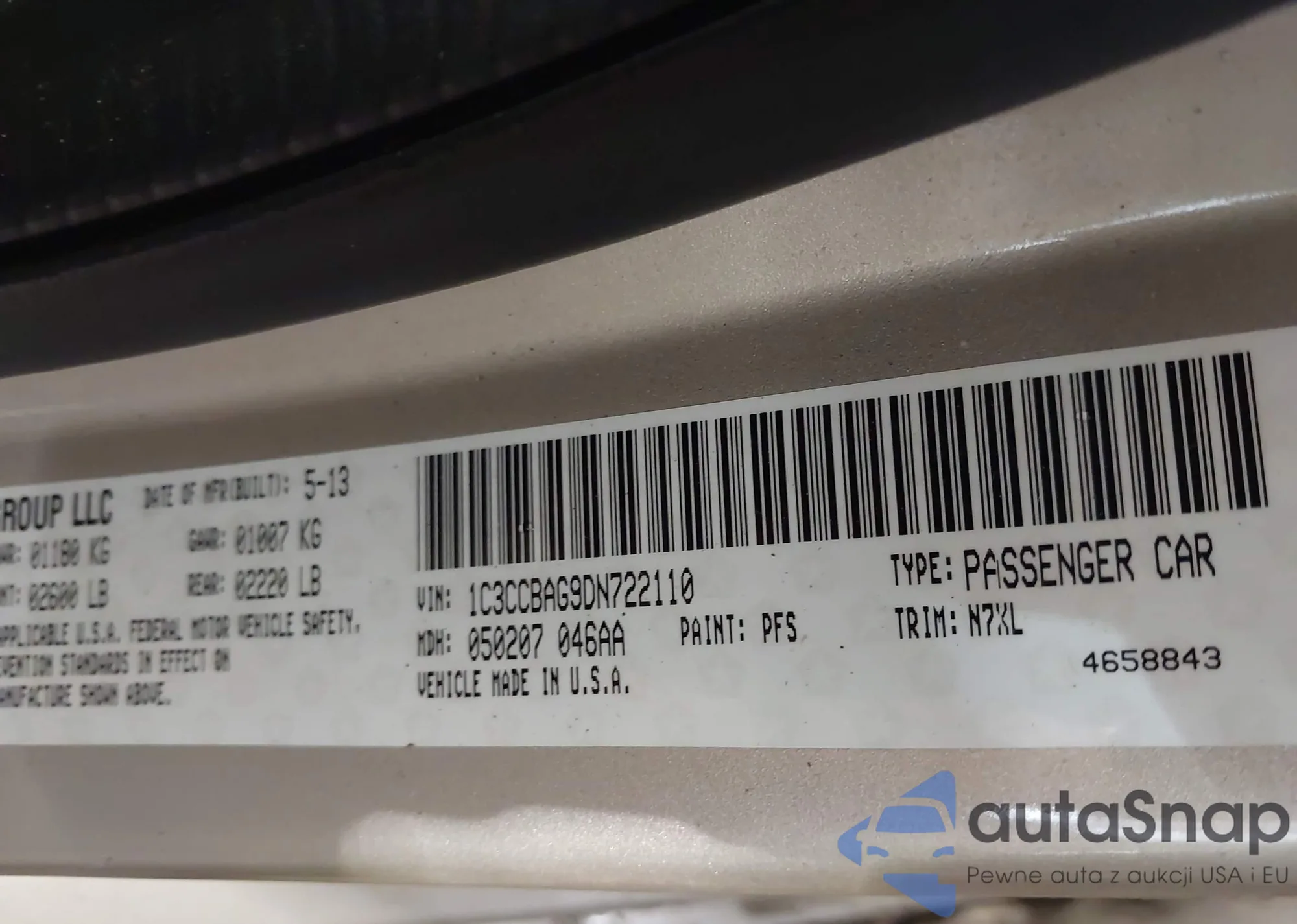 • VIN 1C3CCBAG9DN722110