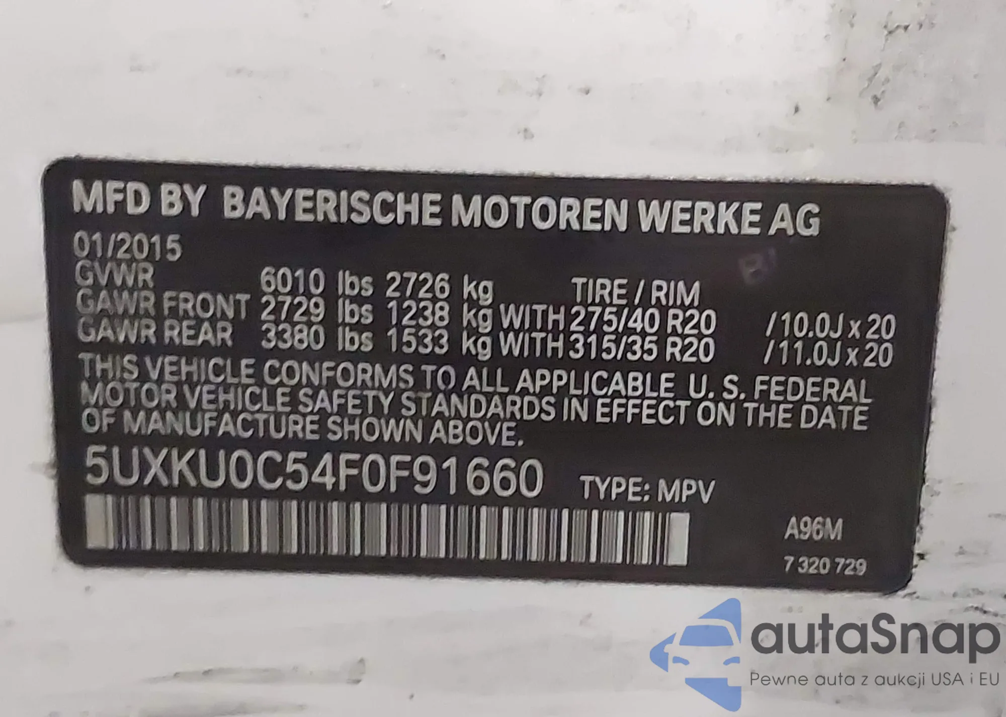 • VIN 5UXKU0C54F0F91660
