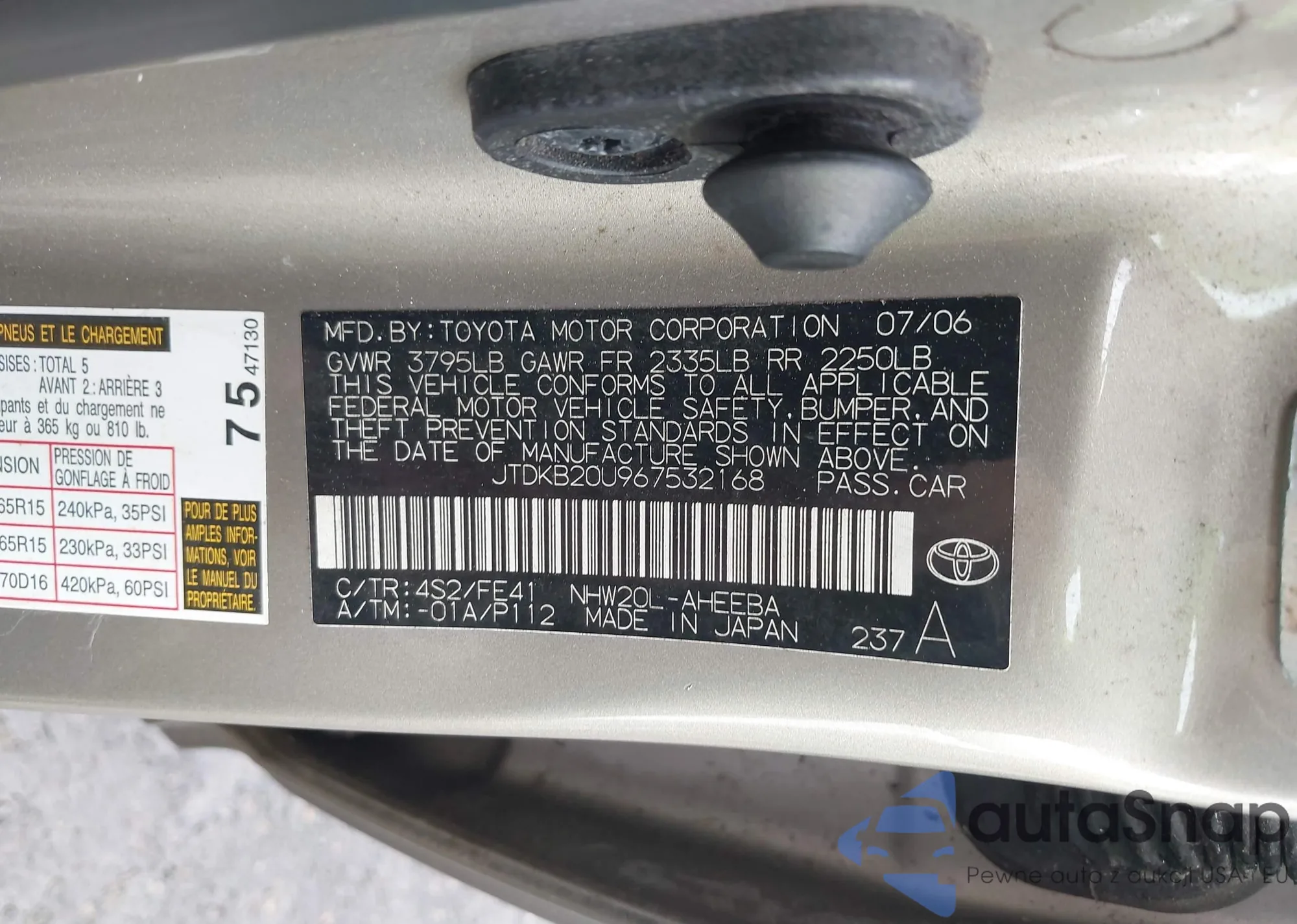 • VIN JTHBJ46G072082052