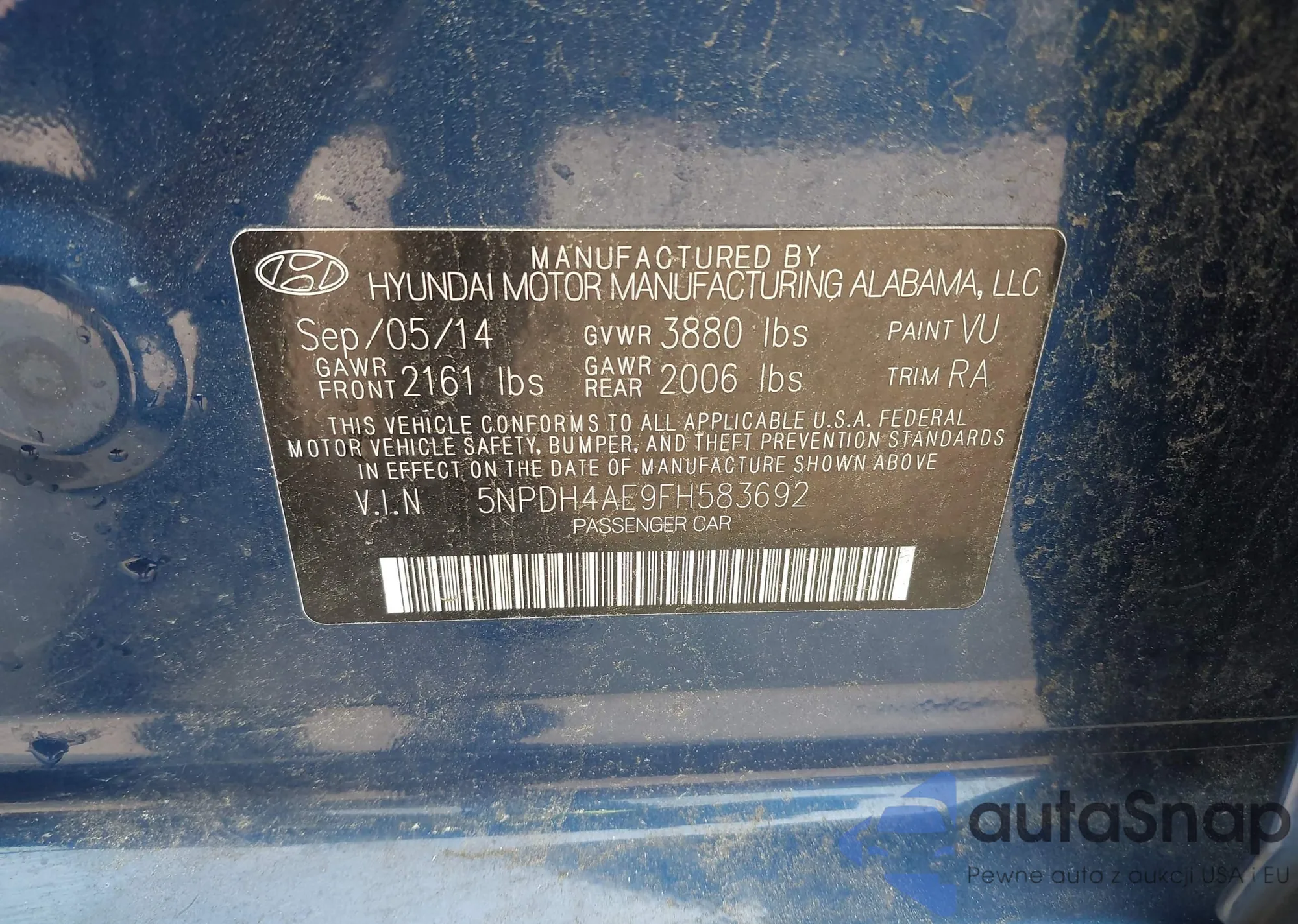 • VIN 5NPDH4AE9FH583692