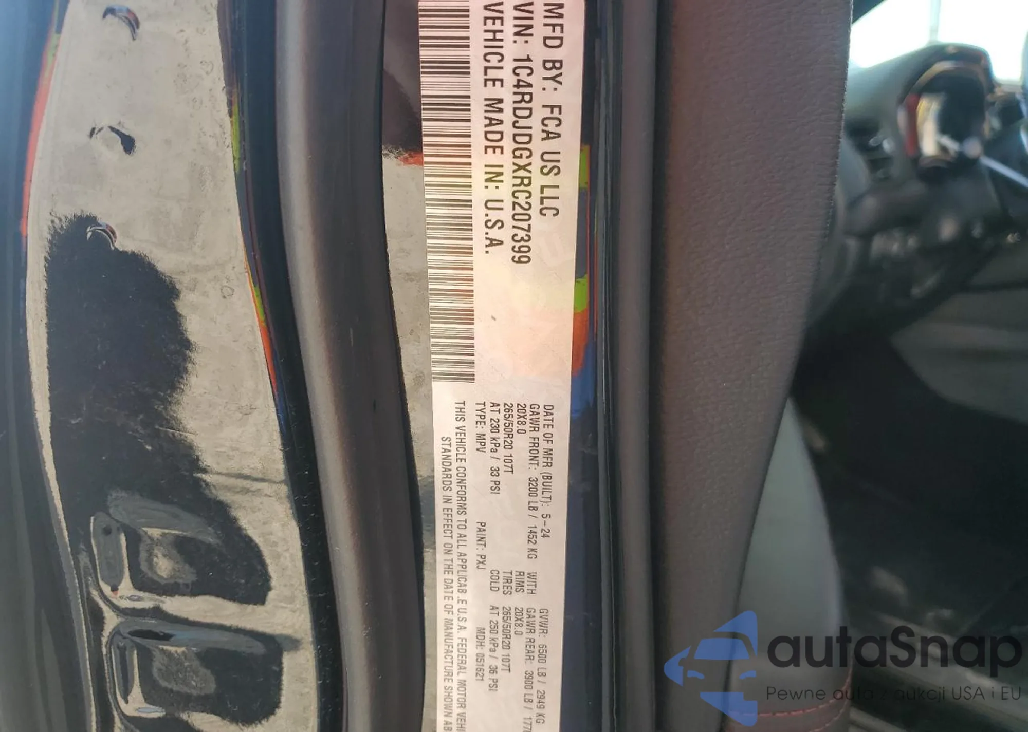 LOT: 60134945 VIN: 1C4RDJDGXRC207399