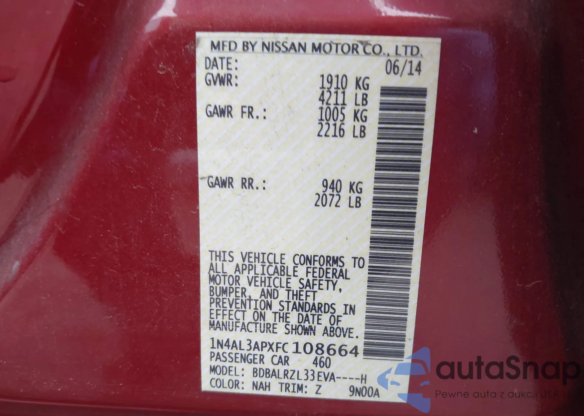 LOT: 41083864 VIN: 1N4AL3APXFC108664