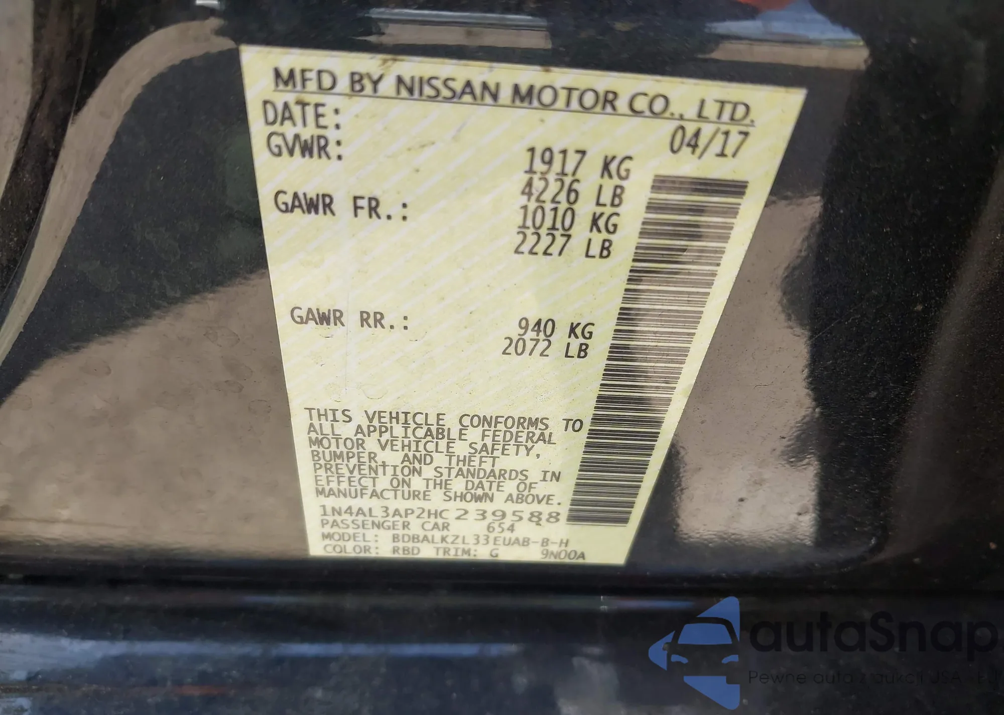 LOT: 42064291 VIN: 1N4AL3AP2HC239588