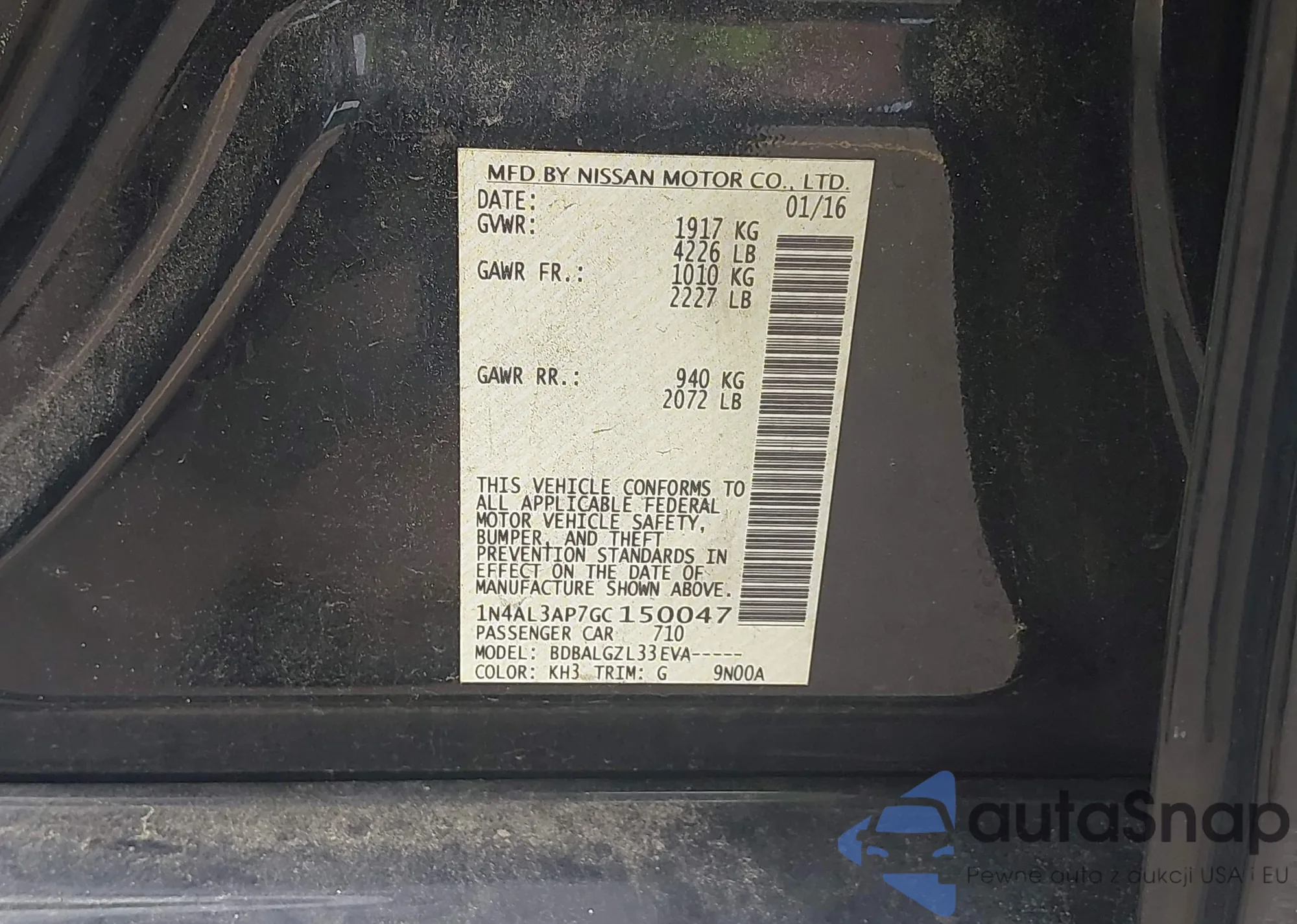 • VIN 1N4AL3AP7GC150047