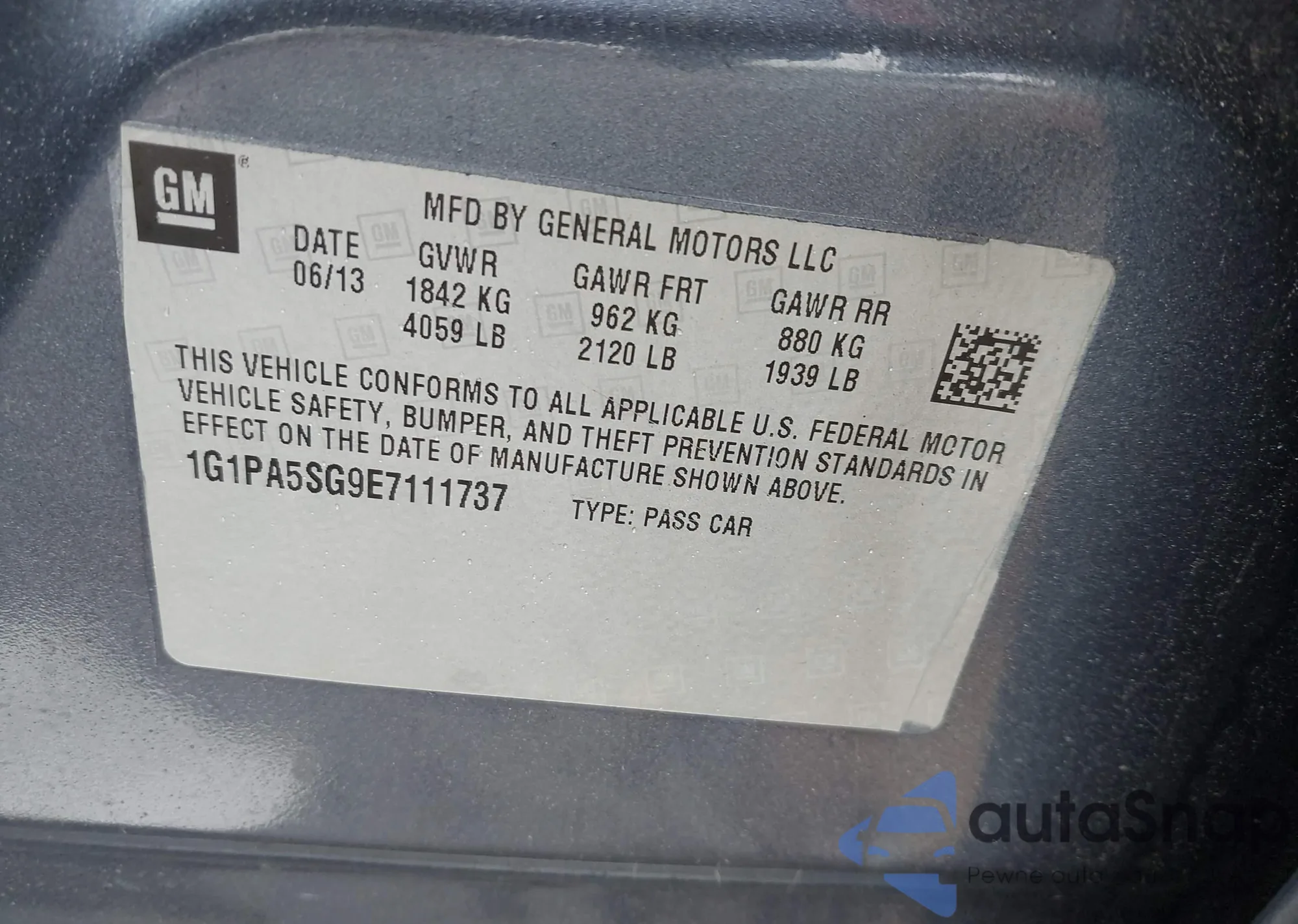 • VIN 1G1PA5SG9E7111737