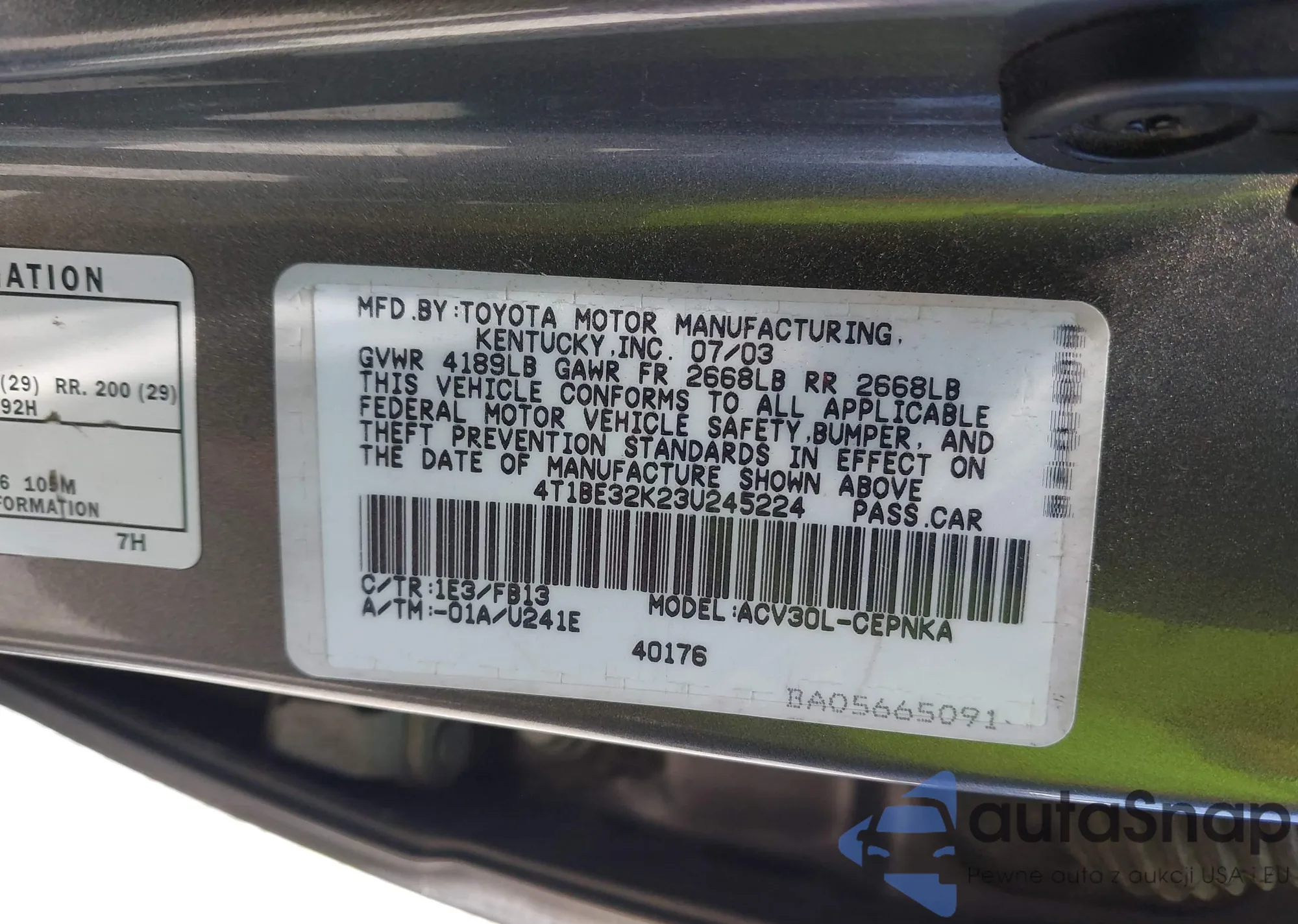 LOT: 42430266 VIN: 4T1BE32K23U245224