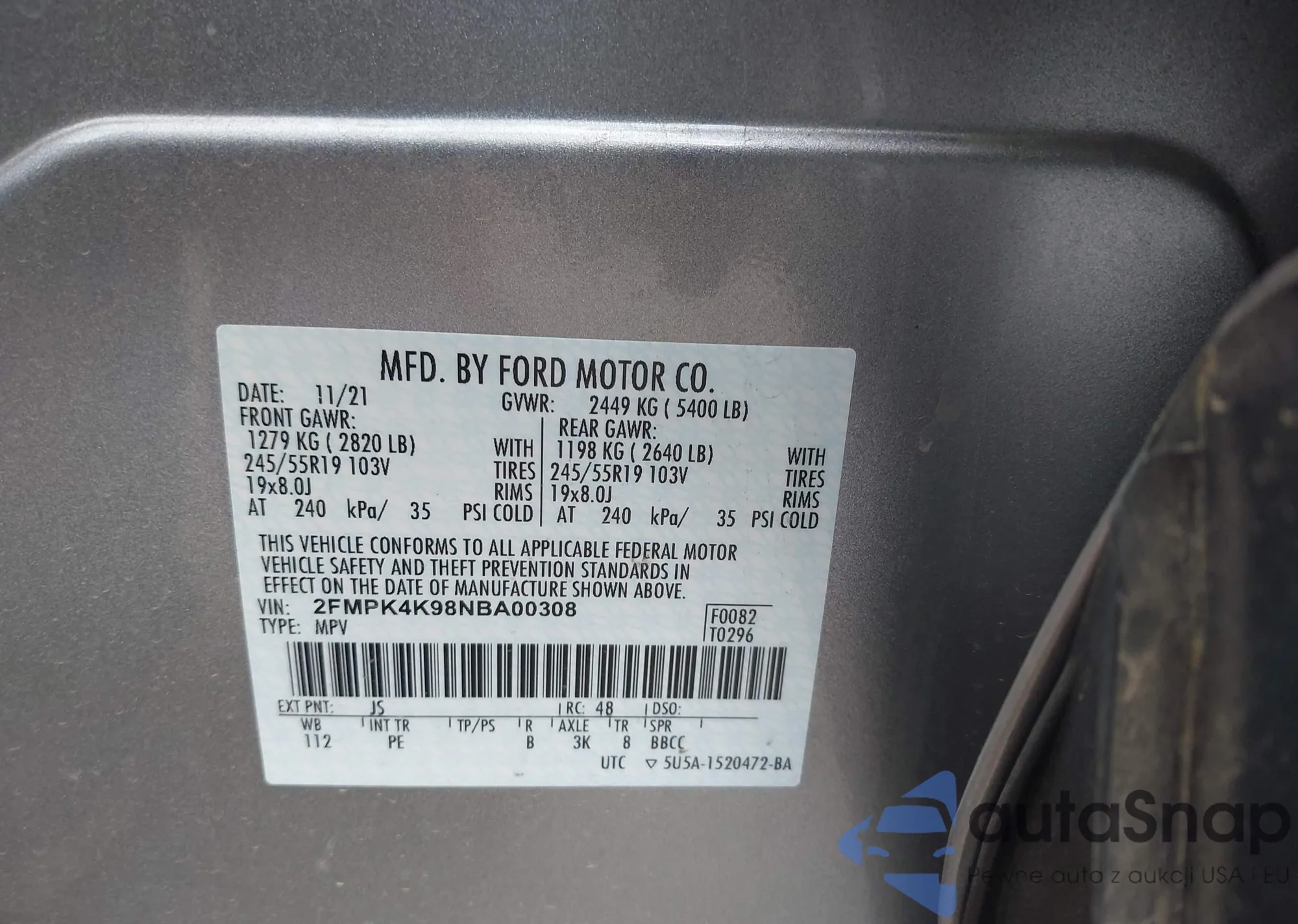 • VIN 2FMPK4K98NBA00308