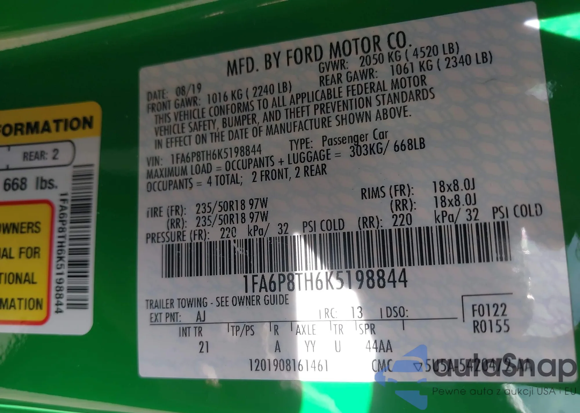 • VIN 1FA6P8TH6K5198844