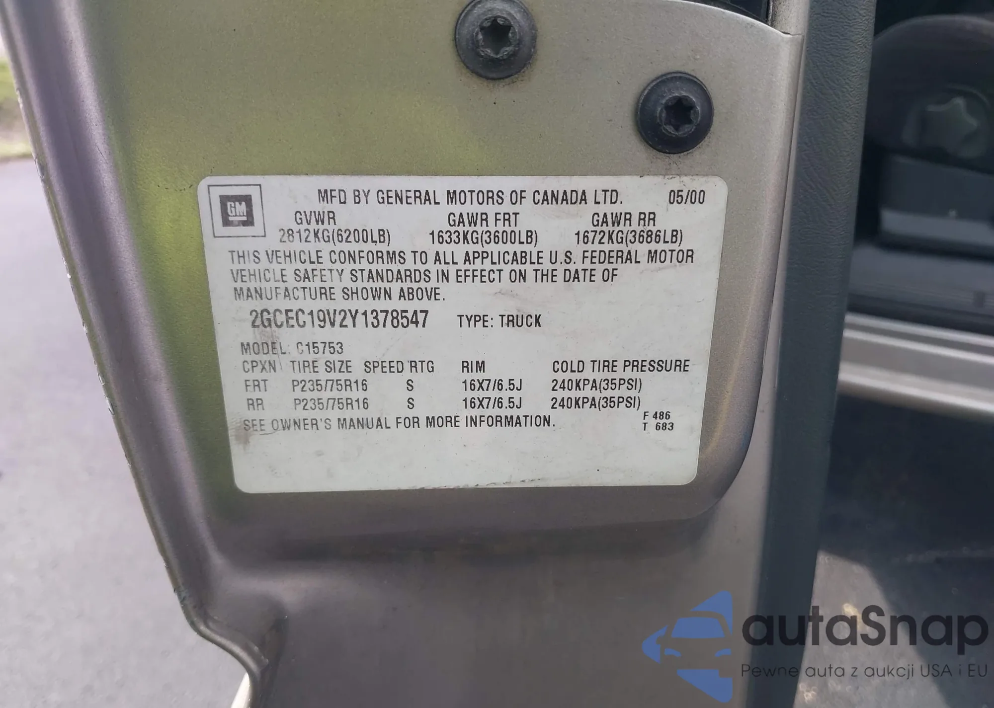 • VIN 2GCEC19V2Y1378547