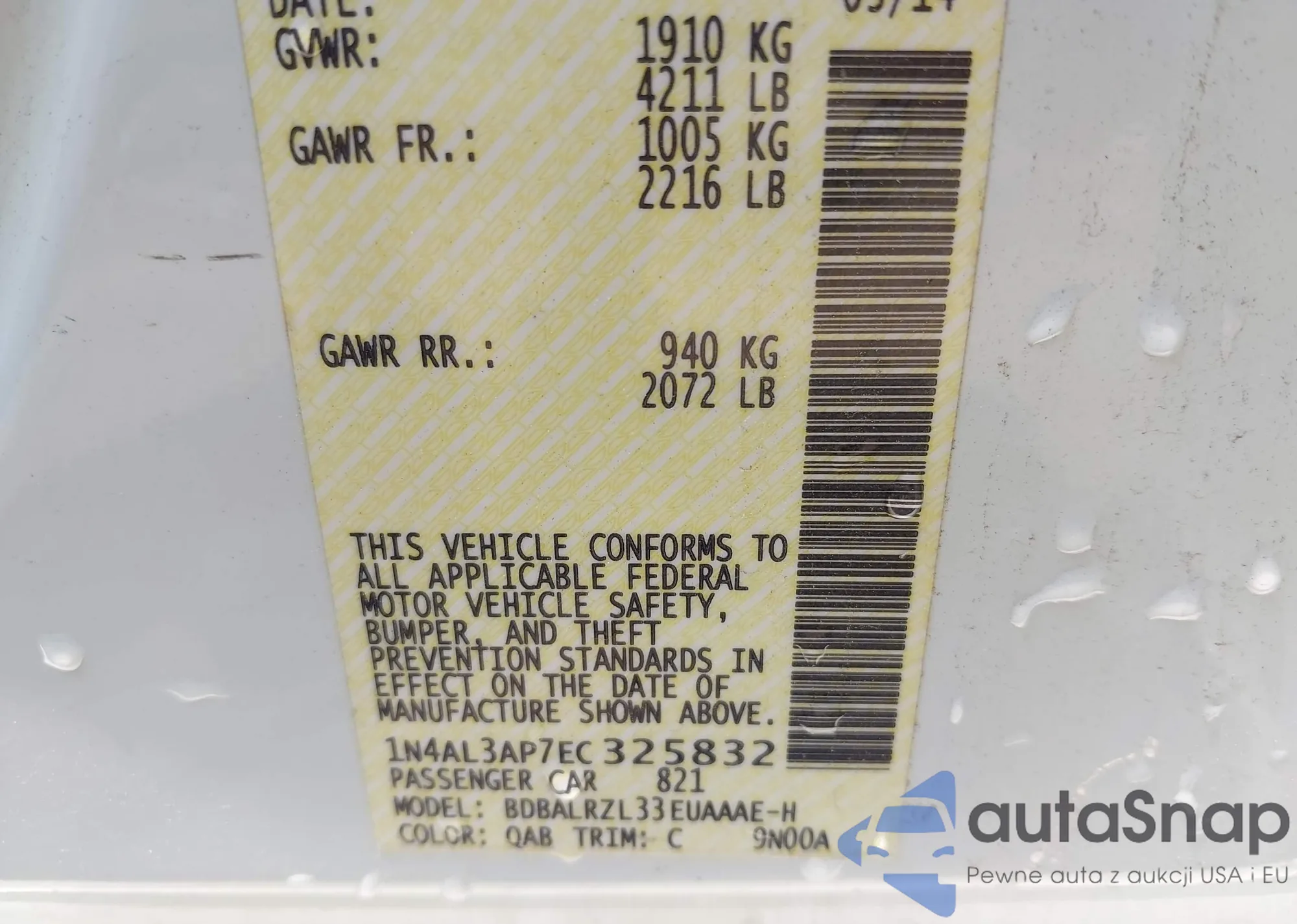 LOT: 42303560 VIN: 1N4AL3AP7EC325832