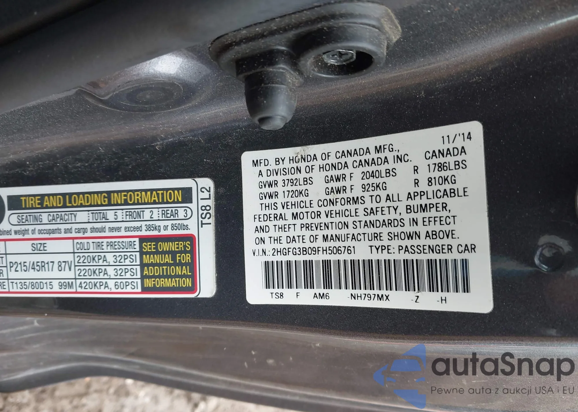 • VIN 2HGFG3B09FH506761