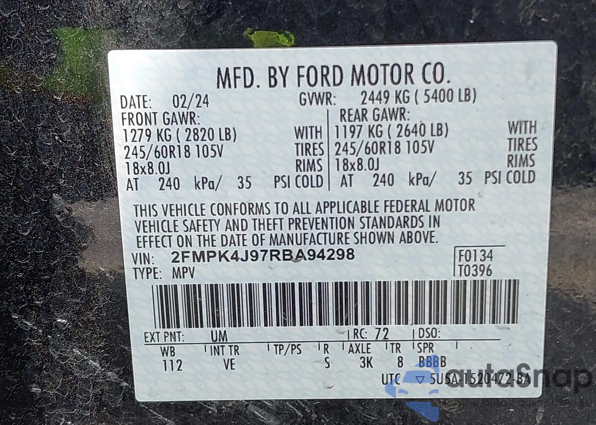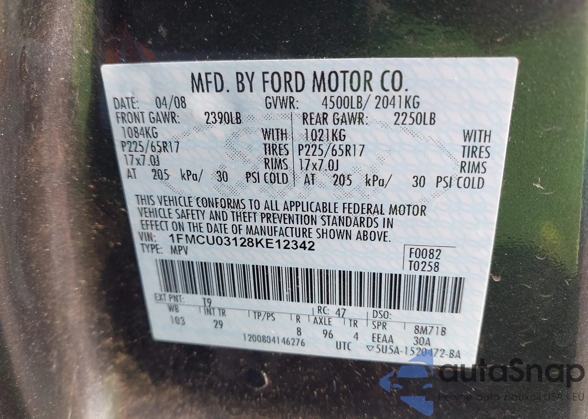 LOT: 42411428 VIN: 1FMCU03128KE12342
