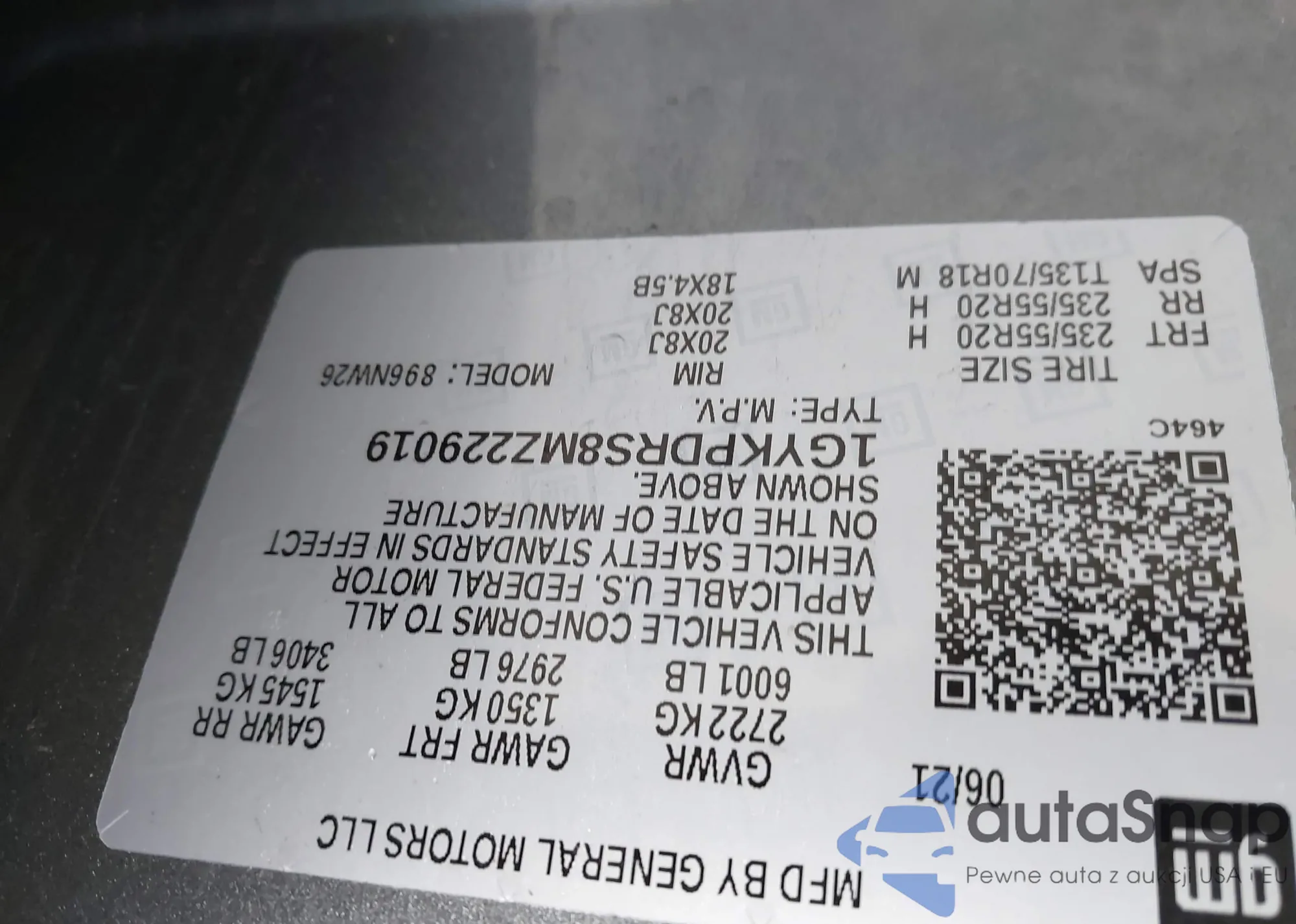 LOT: 41674577 VIN: 1GYKPDRS8MZ229019