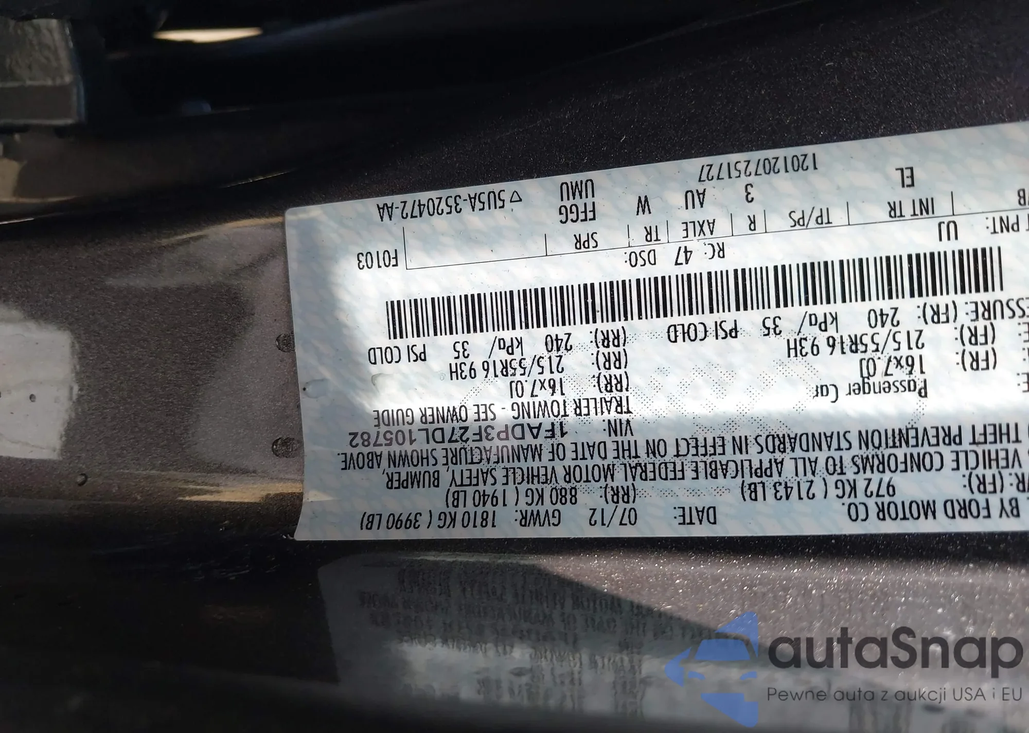 LOT: 42376824 VIN: 1FADP3F21EL267862