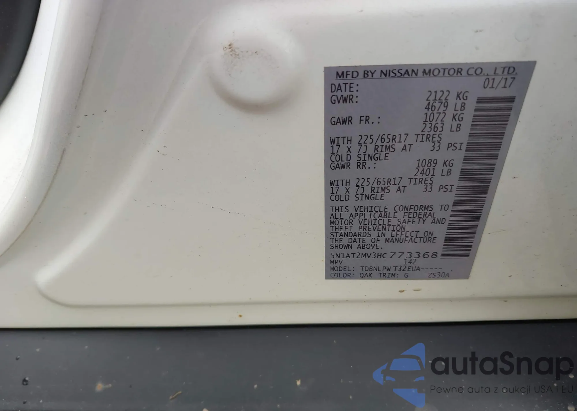 LOT: 42250977 VIN: 5N1AT2MV3HC773368
