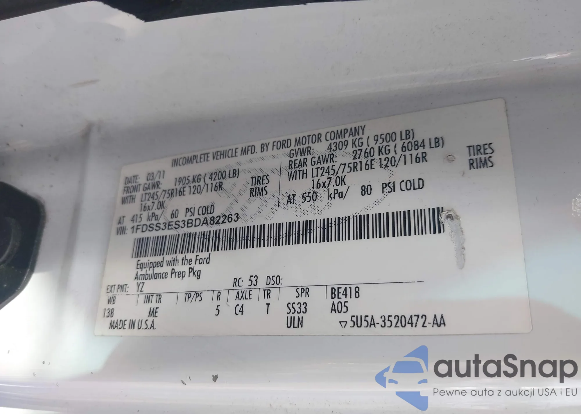 LOT: 42027635 VIN: 2FMPK3G94MBA28530
